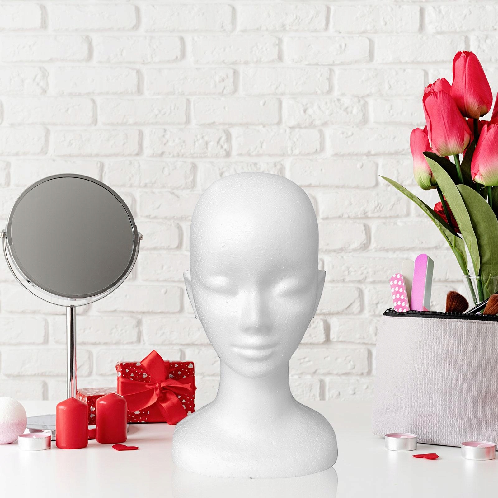 [высококачественные материалы]: головка манекена изготовлена из гладкого материала поверхности, легкого и долговечного, легко ношения. Стабильна на столе для лучшего отображения.