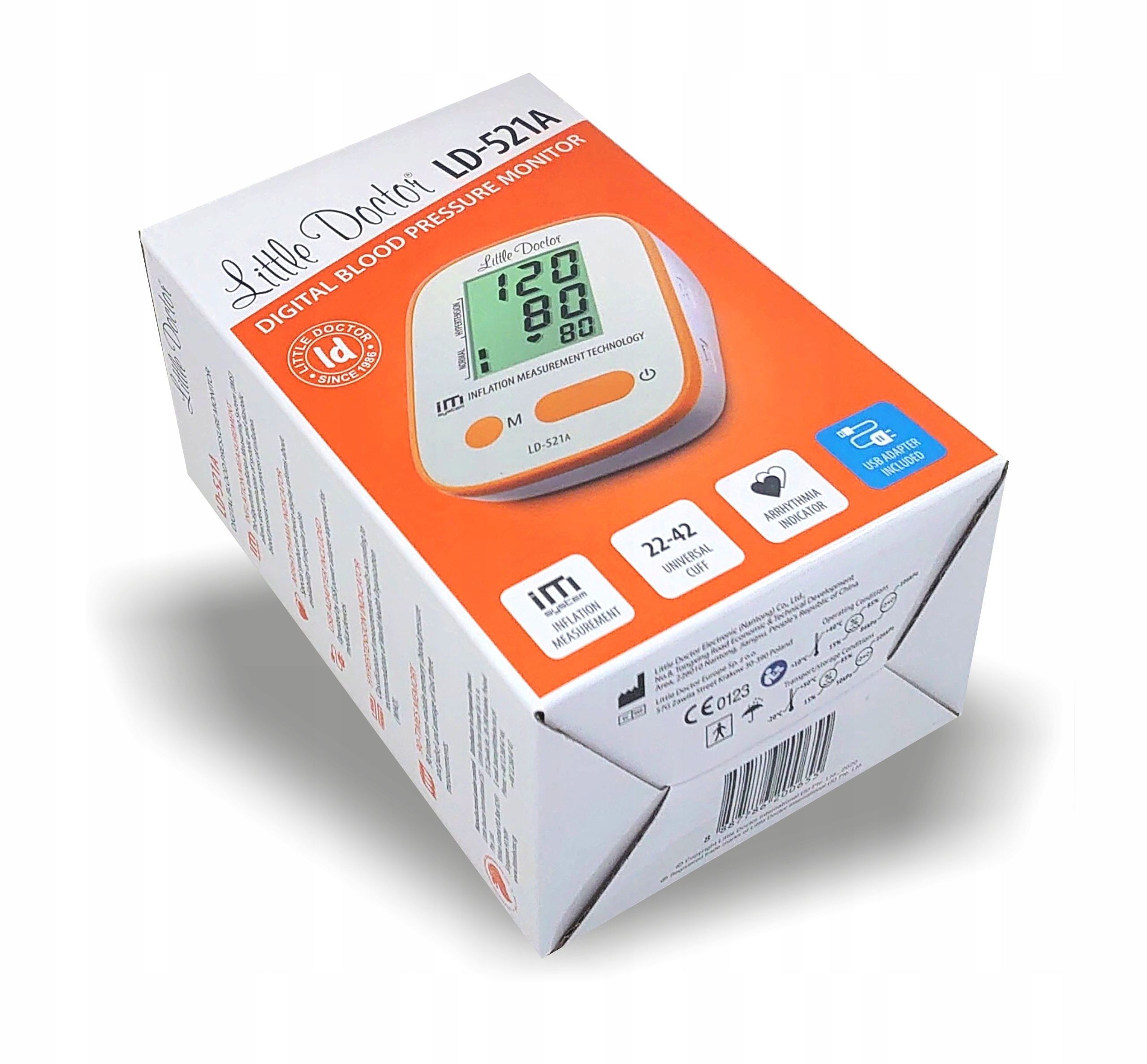 LITTLE DOCTOR LD-521A АВТОМАТИЧЕСКИЙ МОНИТОР АРТЕРИАЛЬНОГО ДАВЛЕНИЯ С УВЕЛИЧЕННОЙ МАНЖЕТОЙ XL, РАЗМЕРОМ 22–42 СМ И С БЛОКОМ ПИТАНИЯ!