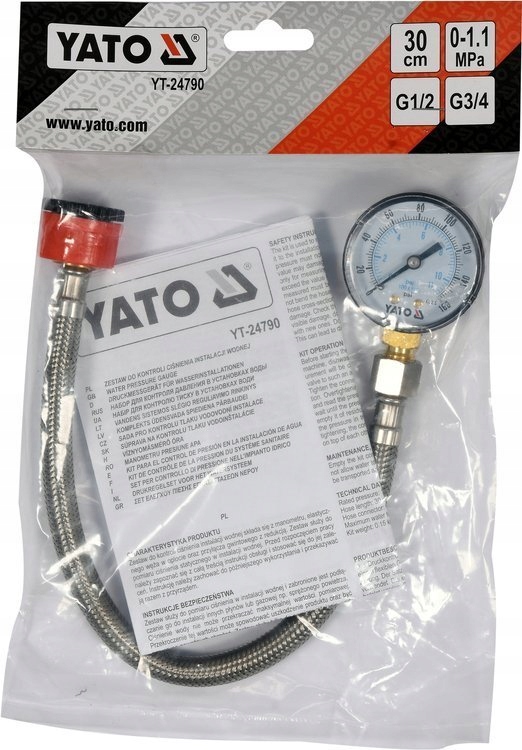 МАНОМЕТР-ТЕСТЕР ДЛЯ КОНТРОЛЯ ДАВЛЕНИЯ В ВОДОСИСТЕМЕ YATO YT-24790
