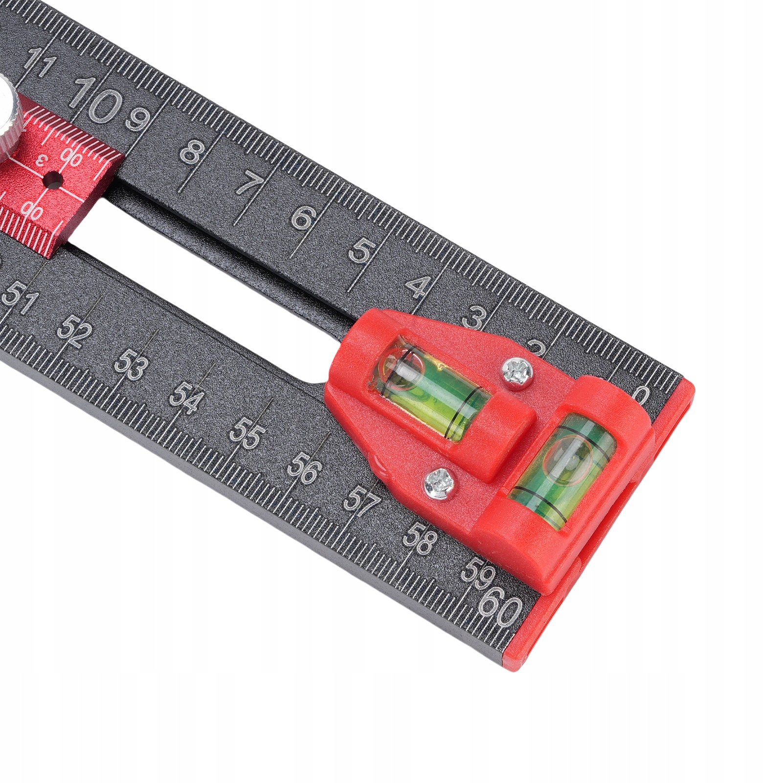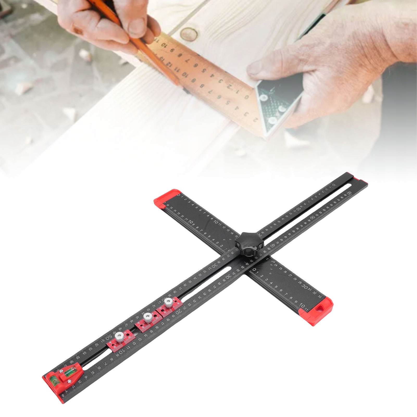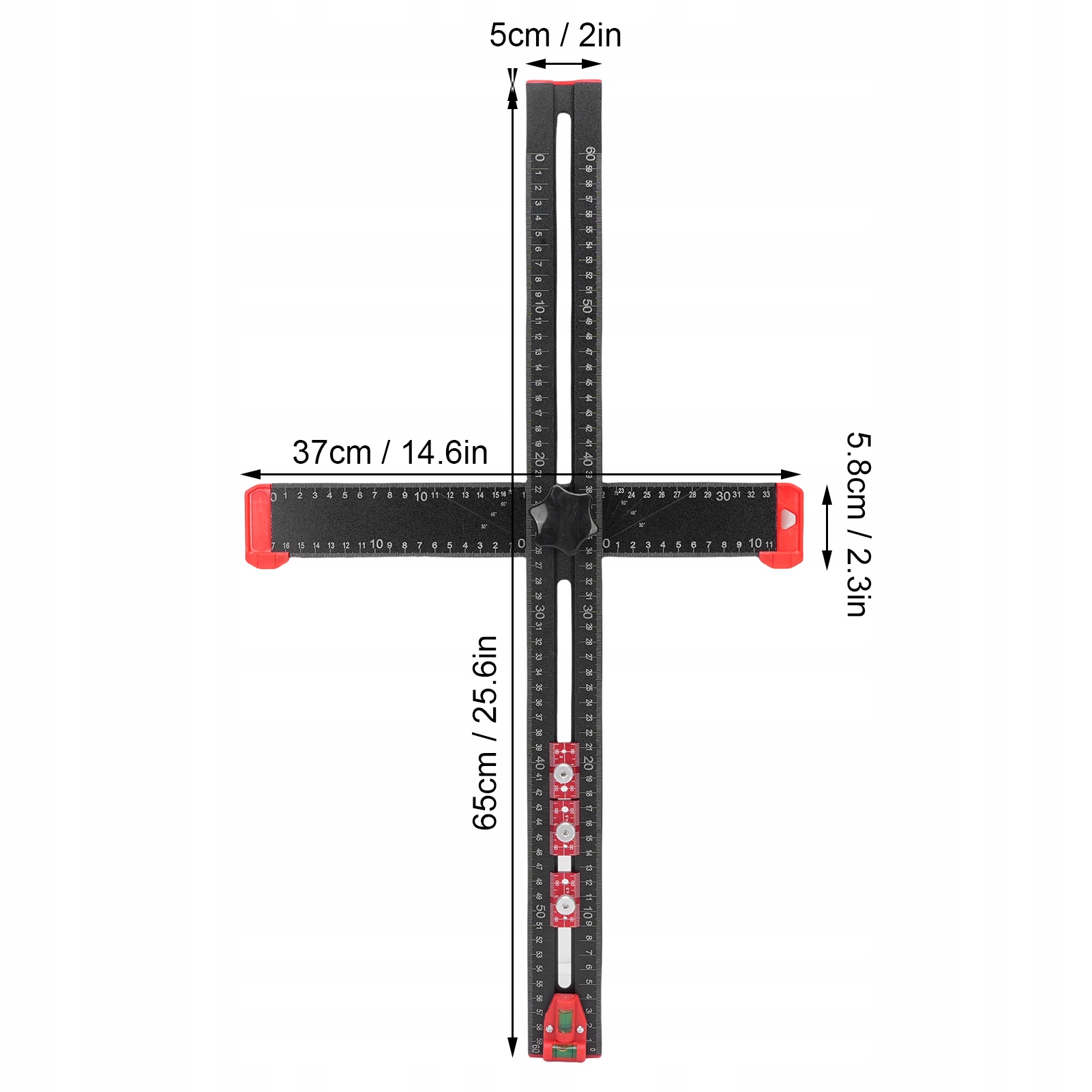 2. [Уровни и пузырьковые ползунки] Этот многофункциональный Т-образный квадрат оснащен двумя уровнями пузырьков, которые помогают выполнять горизонтальную и вертикальную калибровку. Оснащен тремя ползунками для обеспечения точного позиционирования отверстия