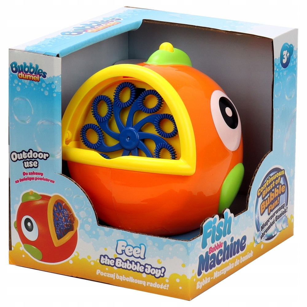 Поместите рыбу на улицу, налейте ей в рот немного жидкости и нажмите кнопку на ее голове, и она выпустит поток пузырьков!