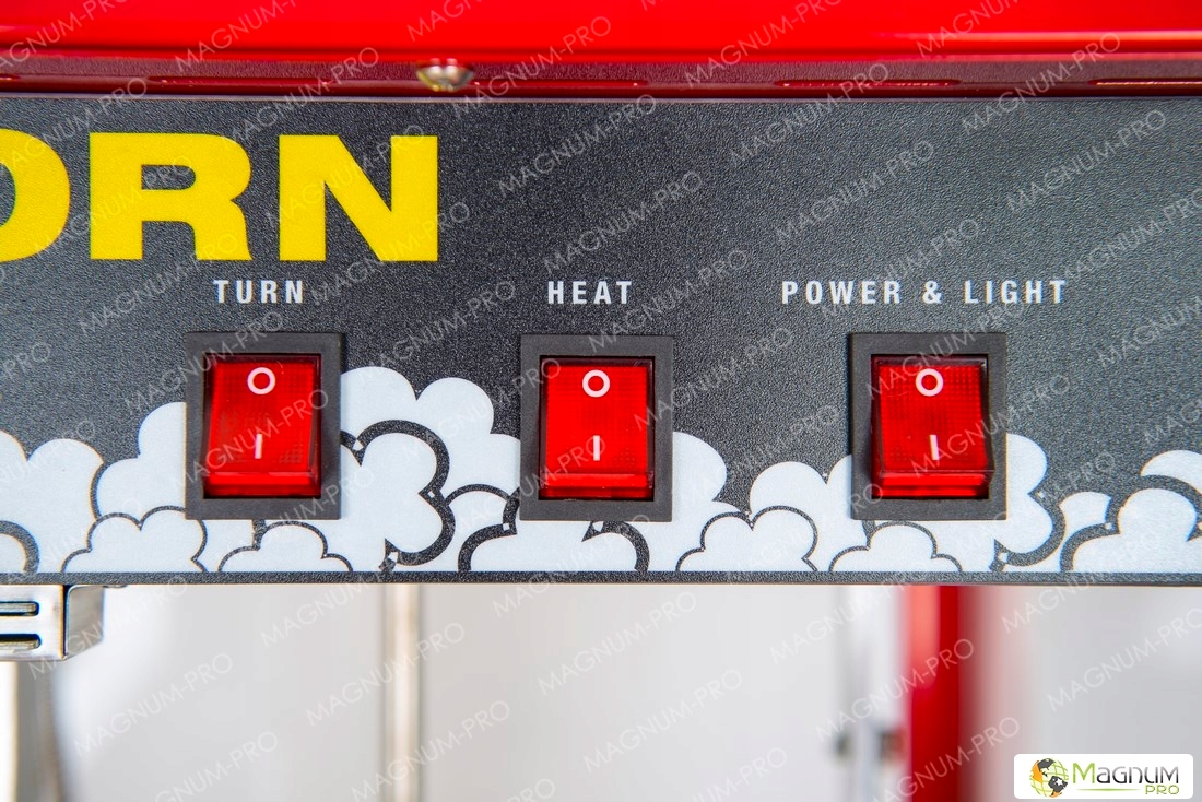 Аппарат для попкорна идеально подходит для профессионального приготовления попкорна в больших количествах. Он идеально подходит для продажи попкорна в кинотеатрах, парках развлечений, барах, на специальных мероприятиях и т. д. Работать с этим устройством очень просто и удобно. Устройство имеет сертификат CE