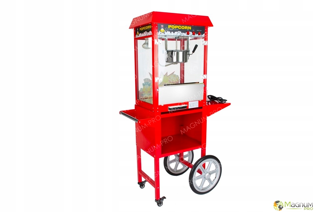 Прочная тележка с 4 колесами идеально подходит для перевозки попкорна в выбранное вами место. Имеет дополнительную столешницу и шкаф, благодаря чему у нас будет место для хранения аксессуаров, упаковки и кукурузы.