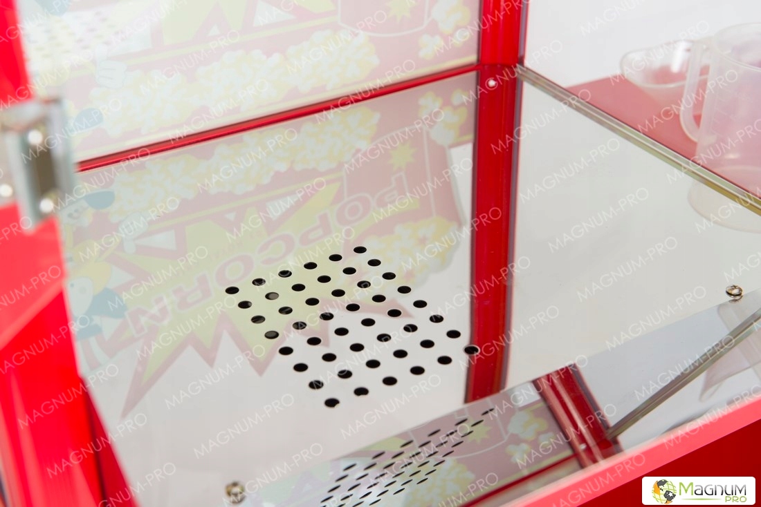 Все элементы, соприкасающиеся с кукурузой, изготовлены из высококачественной нержавеющей стали, что позволяет очень легко чистить устройство. и при этом имеем защиту от коррозии. Нагревательный элемент в основании устройства из алюминия обеспечивает непрерывную и высокую эффективность, благодаря чему мы имеем доступ к теплому попкорну на постоянной основе.