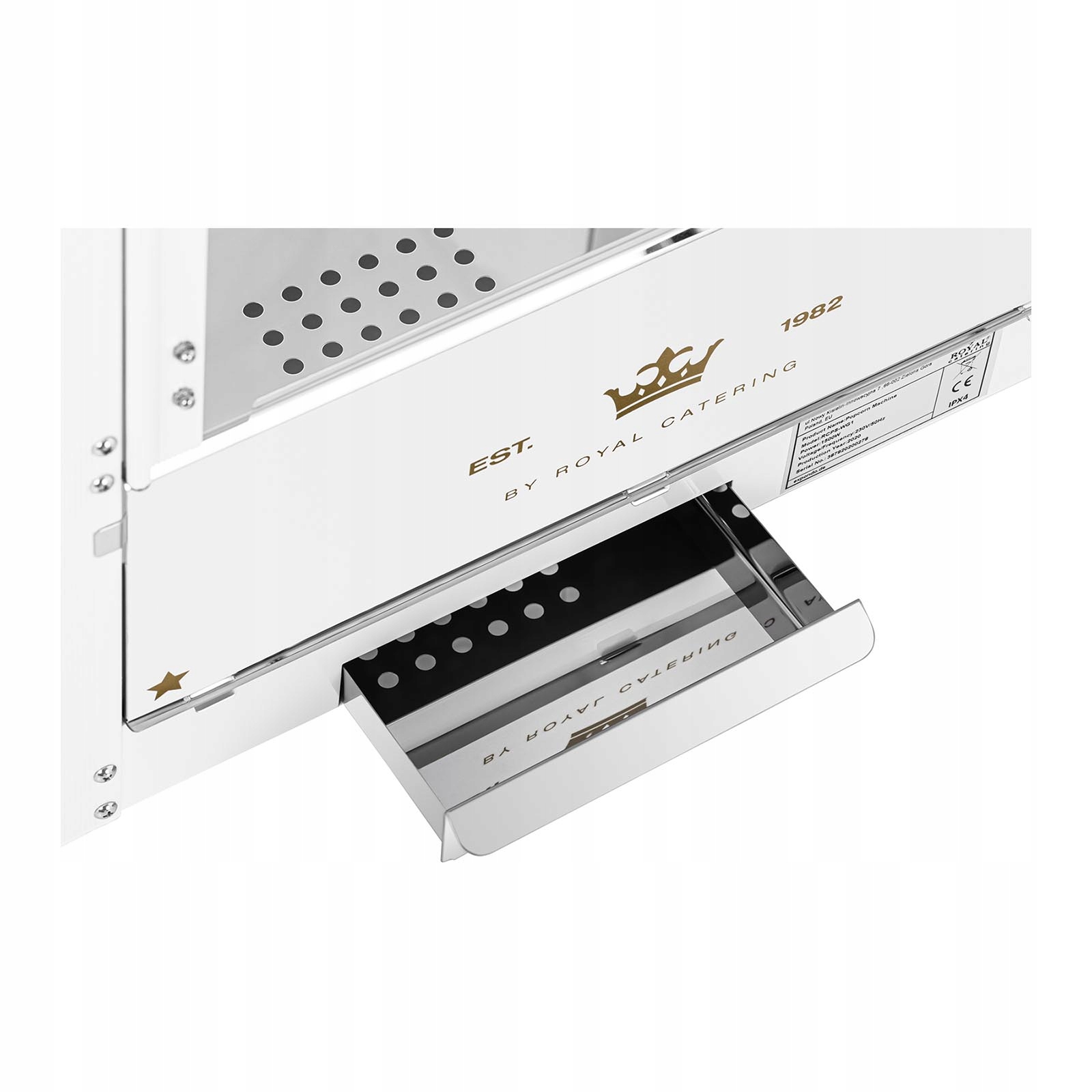 Аппарат для попкорна Royal Catering — профессиональное устройство, которое позволяют готовить и поддерживать температуру попкорна. Его можно использовать в кинотеатрах, барах, игровых комнатах, а также в парках развлечений и в качестве аттракциона во время специальных мероприятий и фестивалей. Элегантный дизайн гарантирует, что машина не останется незамеченной. Устройство имеет сертификат CE.
