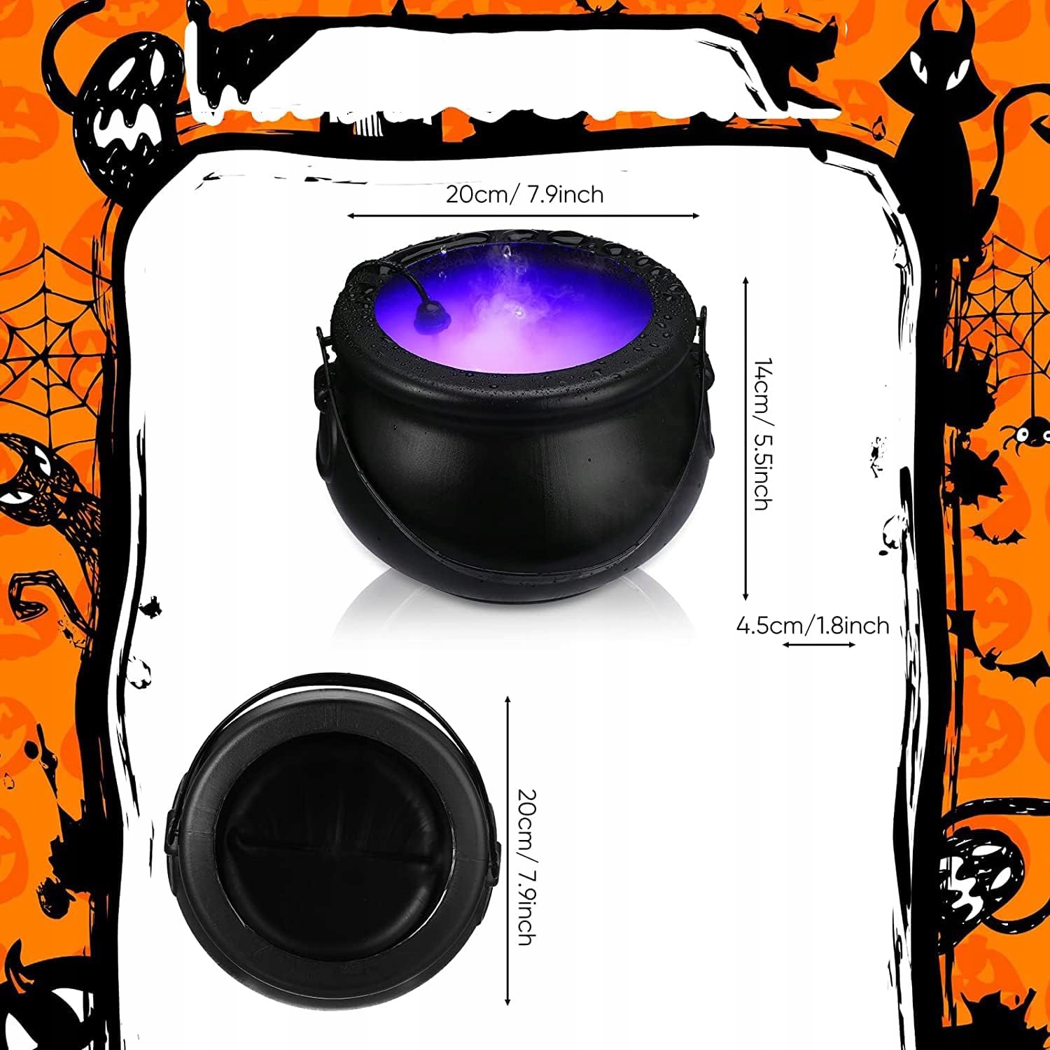 FOG Sprayer: миска с конфеткой на Хэллоуин сделана из пластика ABS, что делает его долговечным и долговечным. Этот многофункциональный ультразвуковой распылитель с ≥ 400 мл/ч не использует тепло или химические вещества, благодаря которой кувшин ведьмы производит достаточно тумана, чтобы создать призрачную атмосферу для Хэллоуина или вечеринки ведьмы.