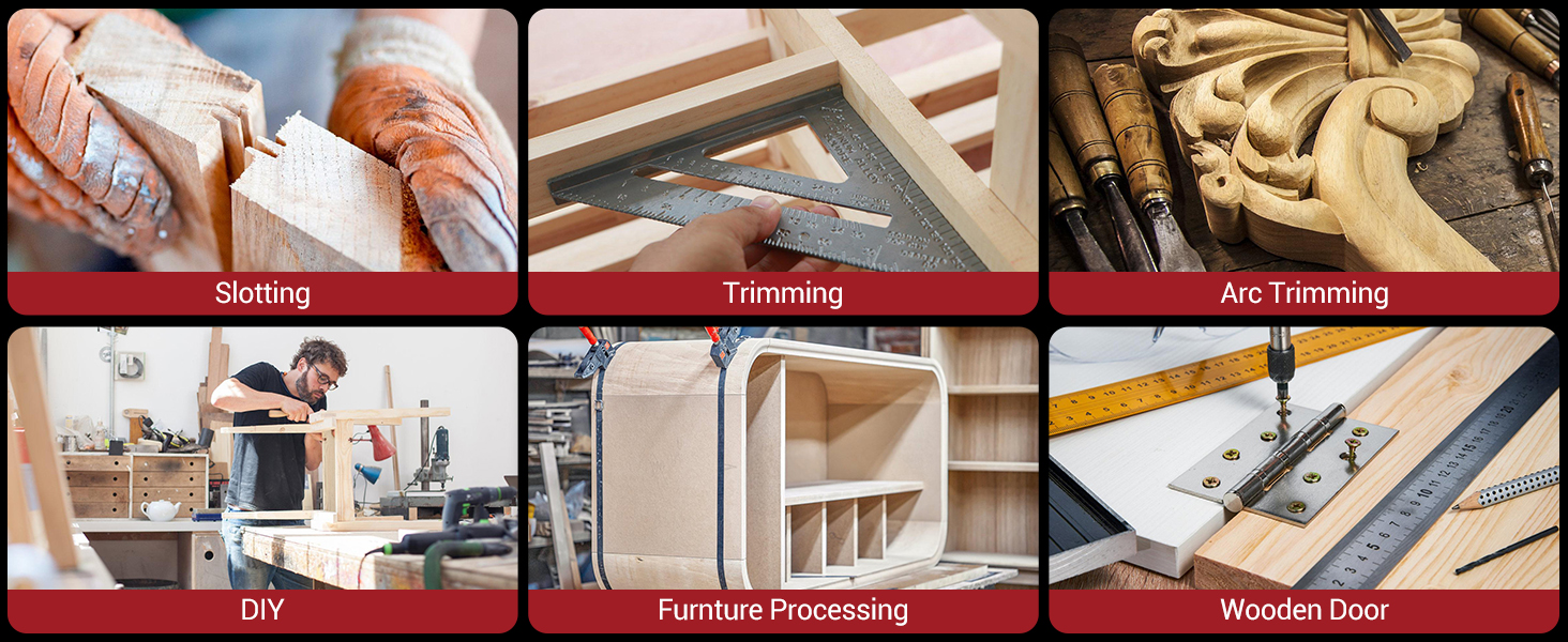 Широко используется при обработке древесины, обработке мебели и шкафа, фазировании, канавке, обработке поверхности, в древесине, ручной обработке DIY, шпоне и других подобных материалах. 🔧