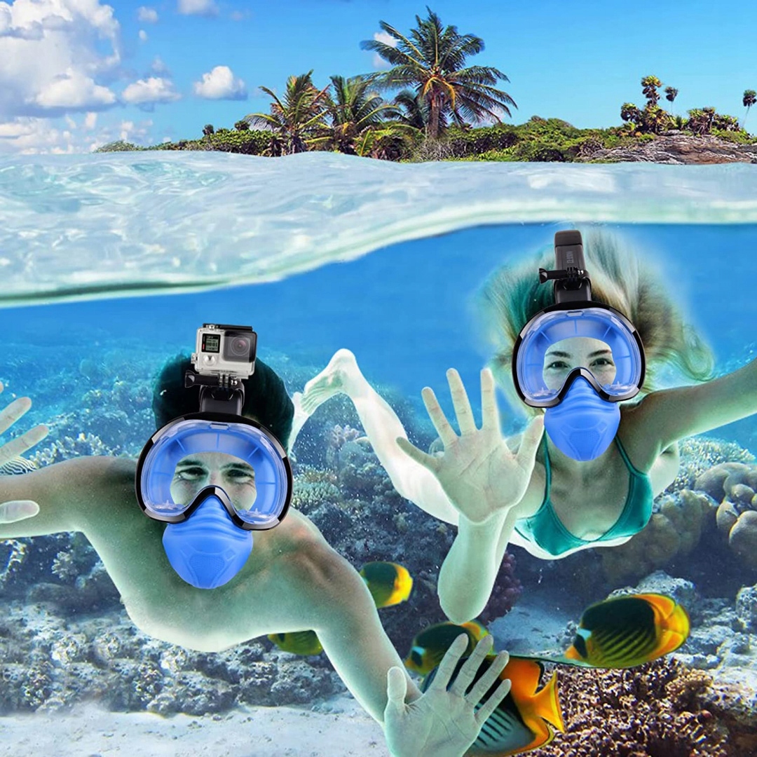 【Складная трубка и съемный держатель для камеры】Дыхательная трубка маски имеет складную форму, что позволяет легко переносить и хранить ее, экономя больше места. Он также оснащен креплением для экшн-камеры, чтобы вы могли запечатлеть каждый удивительный момент в море. На оголовье также имеются специальные фиксаторы, которые не позволяют ему соскользнуть во время ныряния.