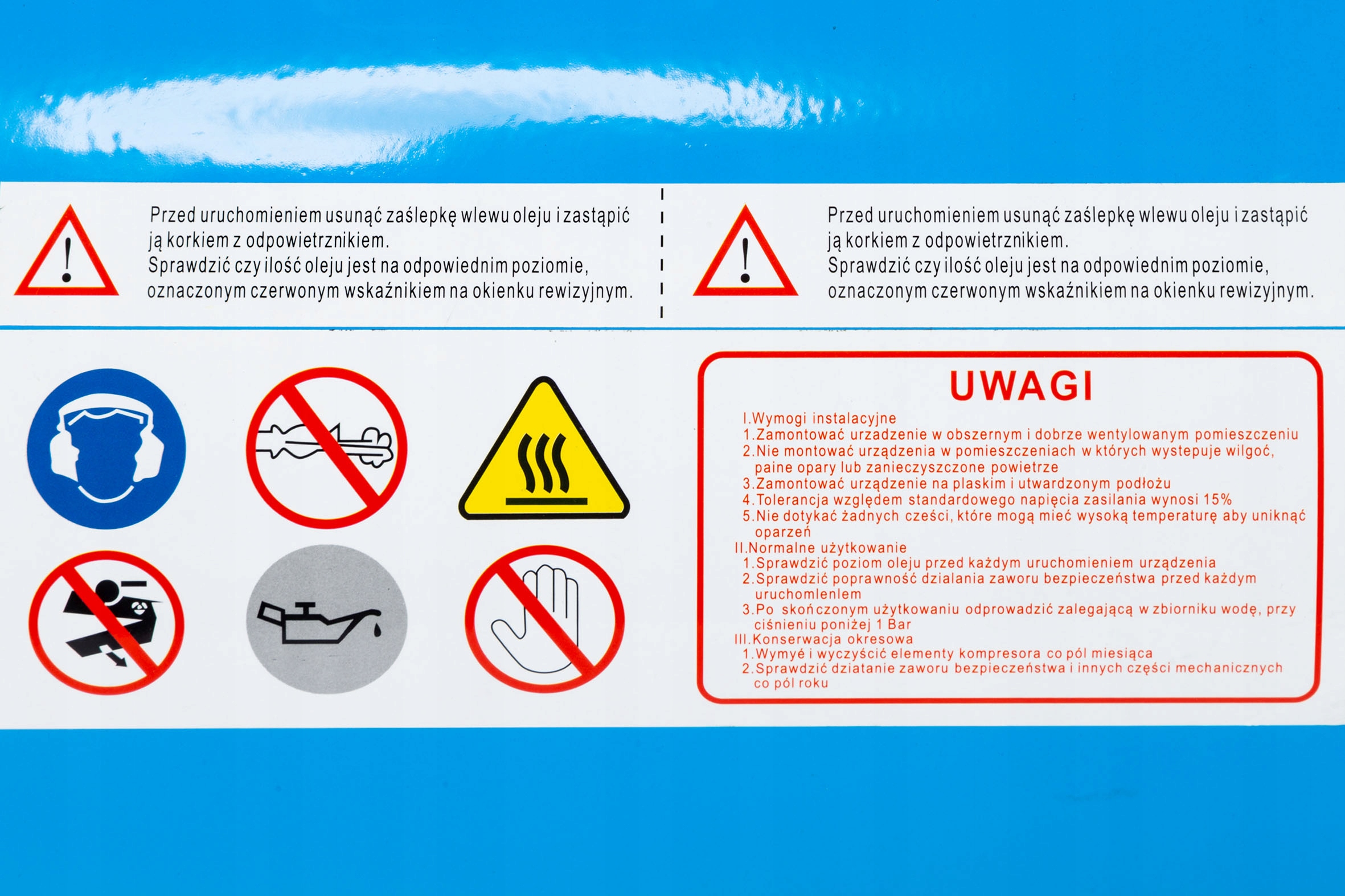 Двигатель устройства имеет максимальную мощность 2,8 кВт и скорость 2850 об/мин. Благодаря соответствующему передаточному числу компрессор работает на низких скоростях 1200 об/мин, что увеличивает срок его службы и ограничивает нагрев системы. Двигатель оснащен термозащитой, предохраняющей его от перегрузки.