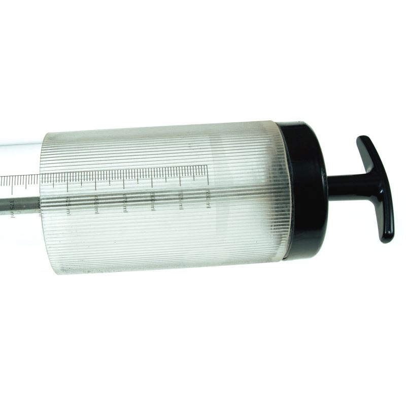 Прозрачный корпус позволяет проверять качество жидкости и количество примесей без необходимости переноса жидкости в другой контейнер. В верхней части шприца существует не -скользящая поверхность для легкого удержания насоса.