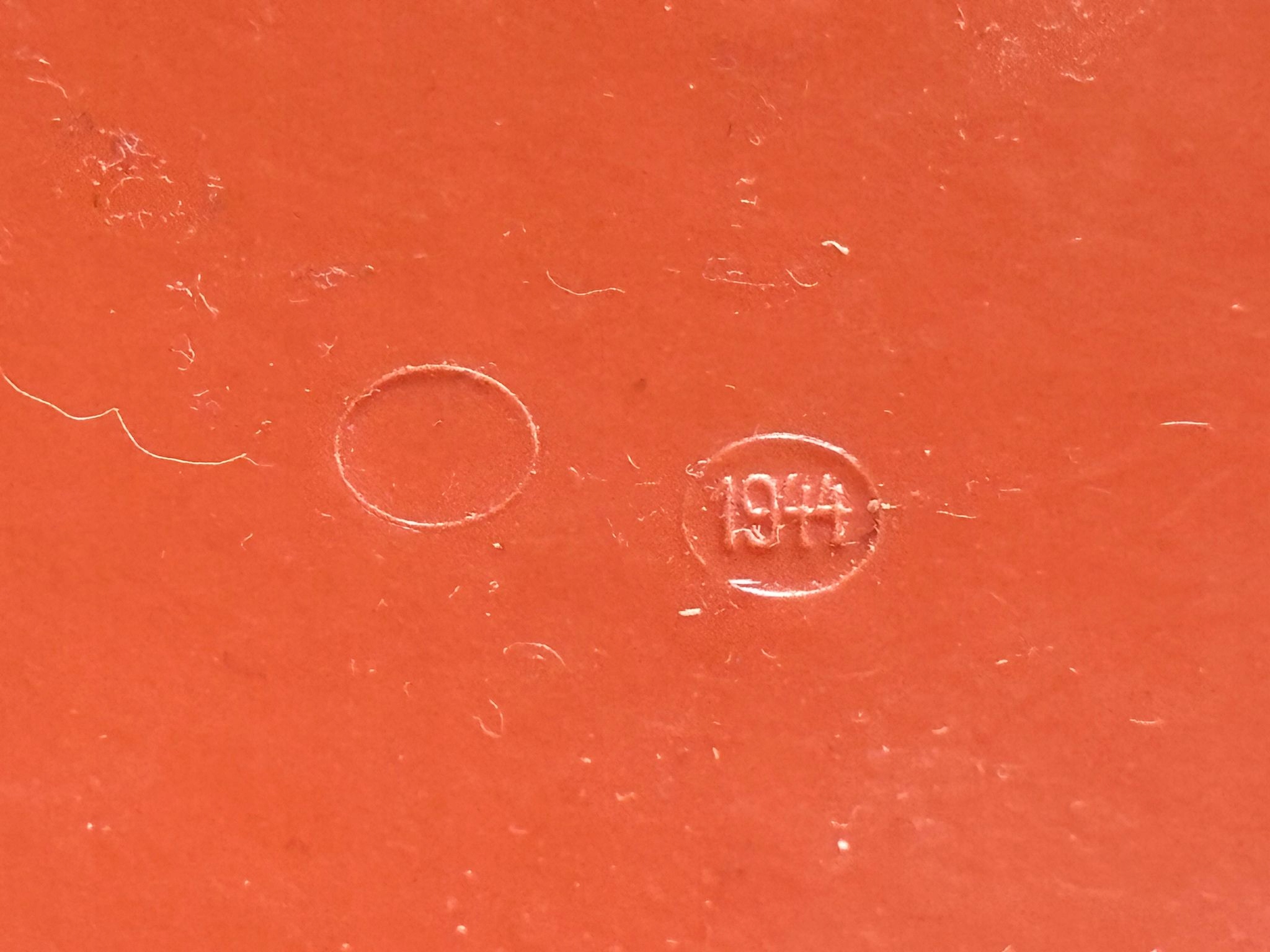 Супер реплика чешского производства, изготовлен из пластикового композита с примесью смолы (затвердевшего пластика), который очень хорошо имитирует БАКЕЛИТ, использовавшийся в ту эпоху. Масленки выпускались в нескольких цветовых вариантах. Здесь мы предлагаем цвет ОРАНЖЕВЫЙ. Подписи внизу обложки и на дне.