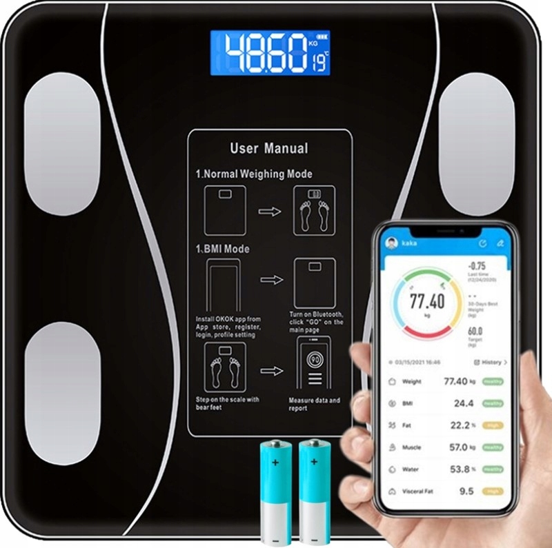 ✔ Анализ композиции тела - меры, среди других Вес, ИМТ, содержание жира, воды и мышечной массы. Ванные комнаты.