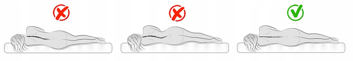 должен обеспечивать анатомическое положение позвоночника во время сна, т. е. горизонтальную линию, когда мы лежим на боку, и форму «двойная S», когда мы лежим на спине или животе.