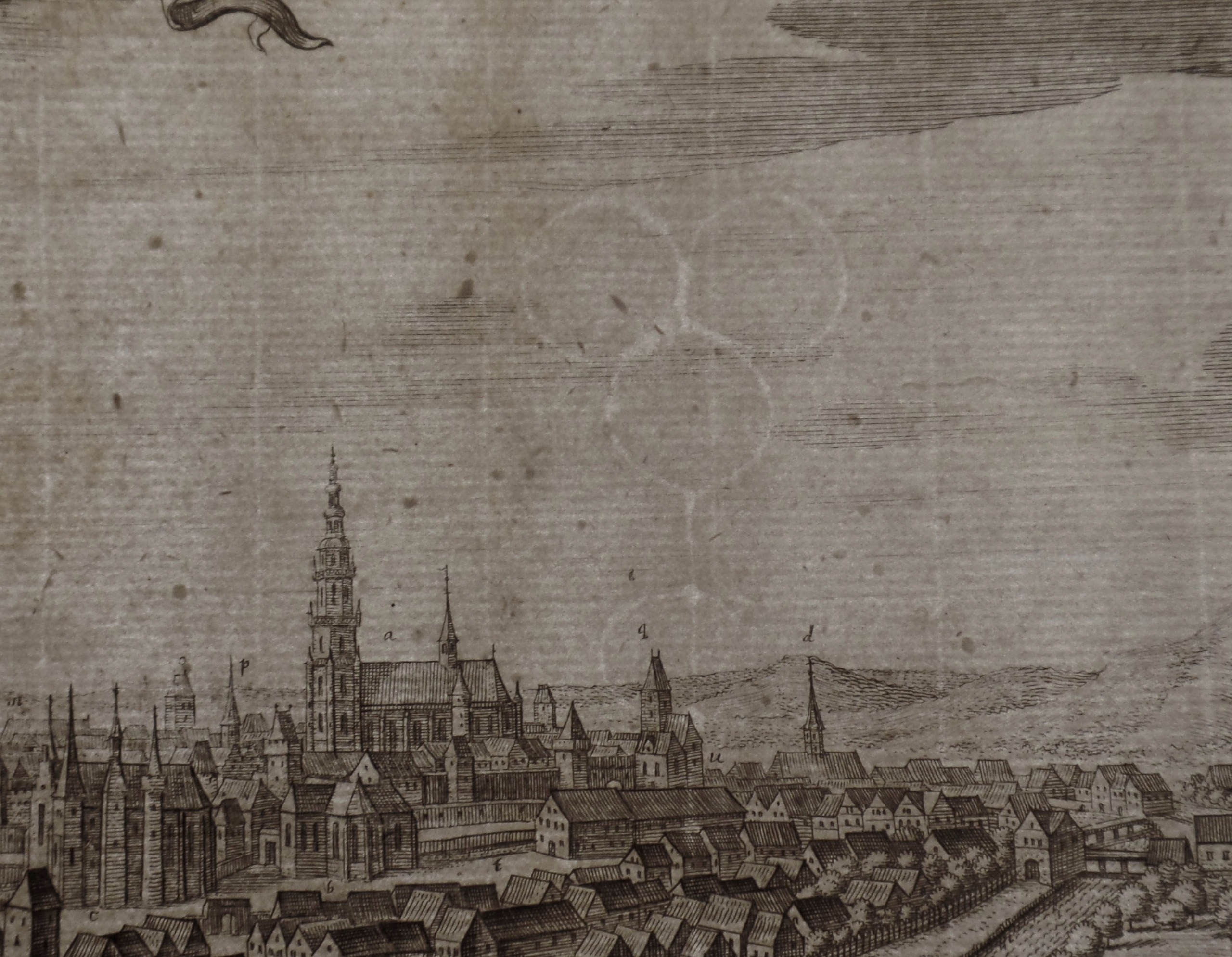 Матеус Мериан (1593-1650) «Панорама Свидницы» Медная гравюра, напечатанная на карте 33 х 37 см (бумага с филигранью).