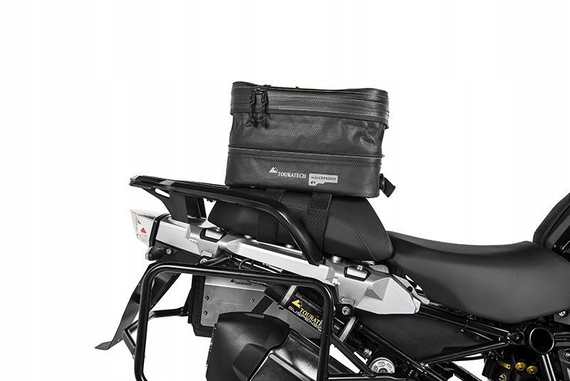 Touratech Extreme Edition Sition Sited благодаря исключительно длинным ремням для липучки, сумка также может быть установлен почти на каждом пассажирском сиденье. Большая вместимость ок. 12 литров могут быть продлены до 18 литров с застежкой на молнии. На верхнем клапане и, защищенных от погодных условий, есть сетчатые карманы, в которых можно хранить мелкие предметы. Отражатель сзади обеспечивает пассивную безопасность.