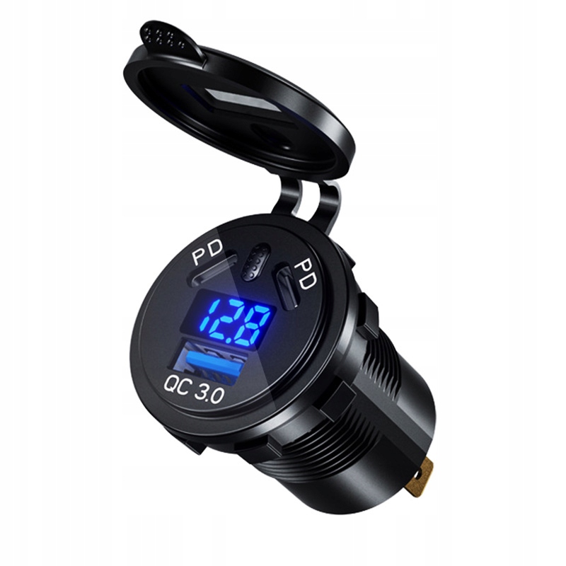 ✔ USB QC3.0 + USB-C PD45W Volttomierz + Физическая кнопка