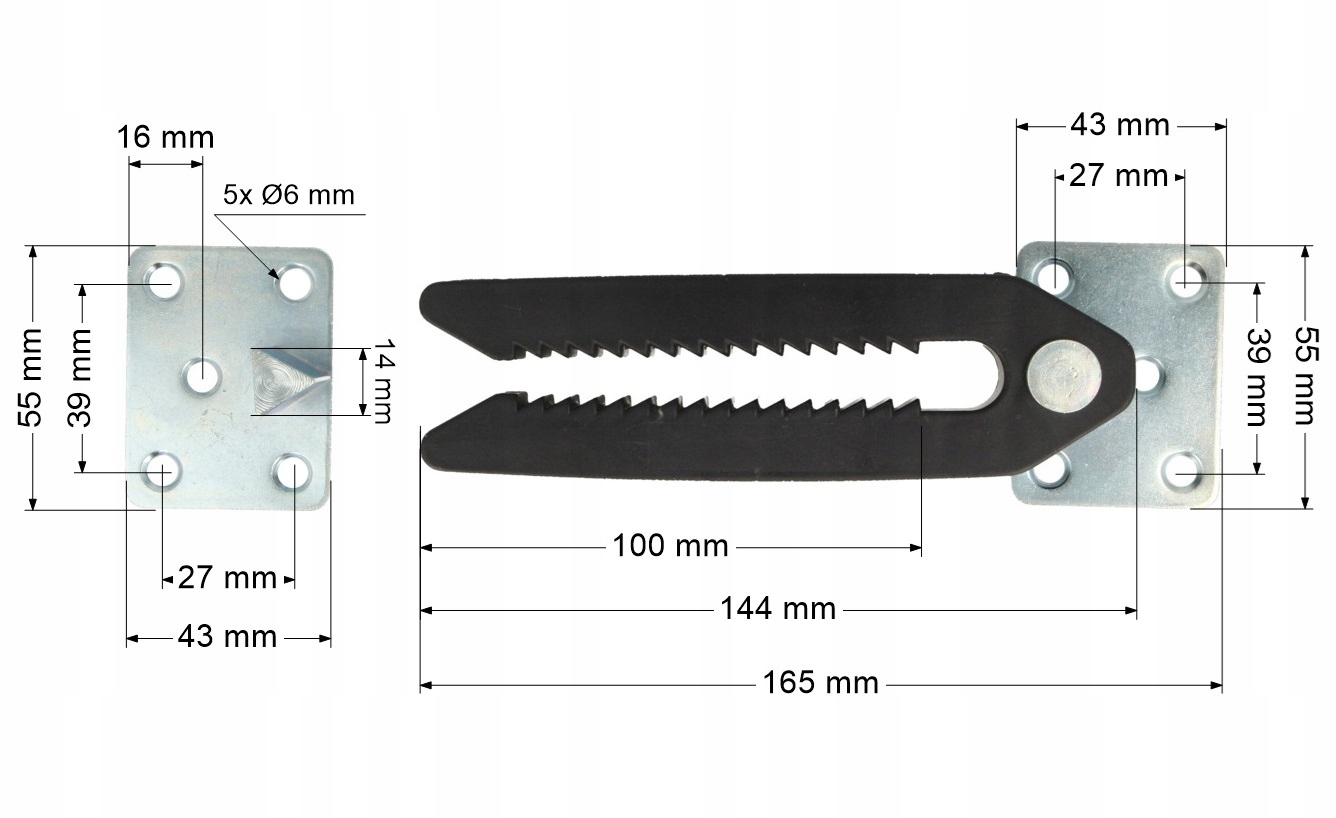 Conctor Connector Furniture Crocodile Furniture L-165 мм Черный пластик и сталь