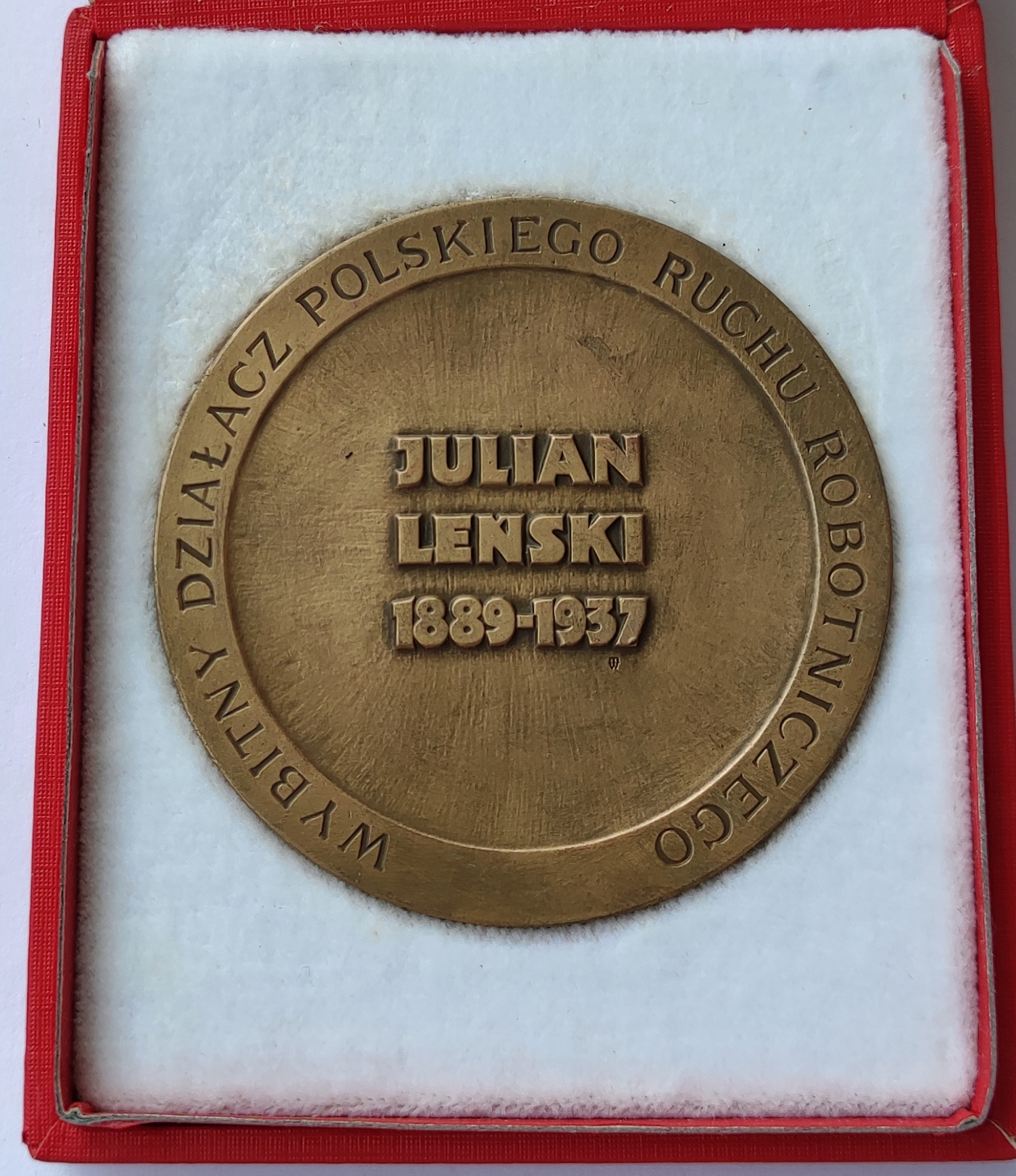 Медаль Джулиан Ленски - выдающийся активист Движения польских рабочих в коробке