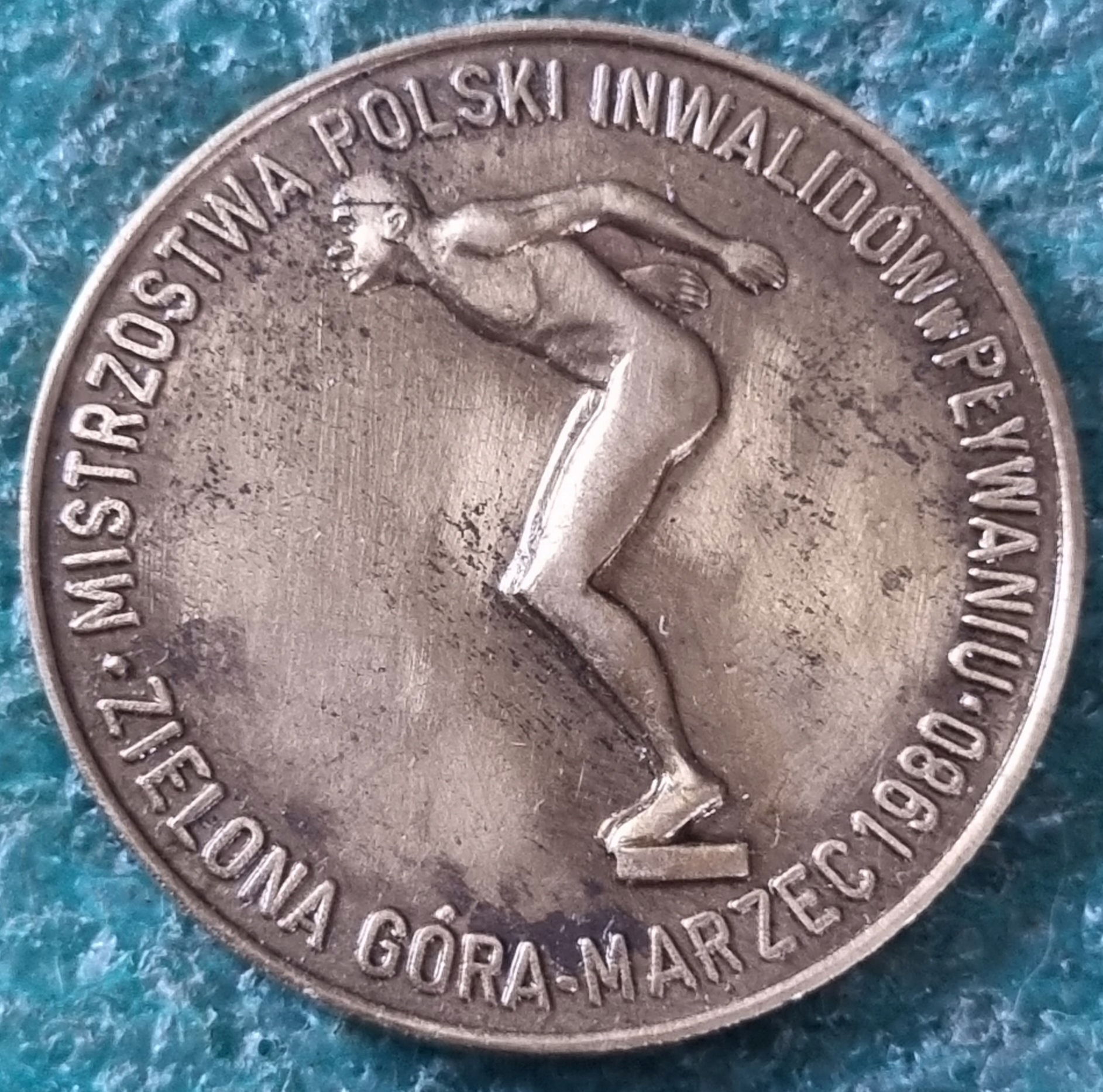 MEDAL MISTRZOSTWA POLSKI INWALIDÓW W PŁYWANIU ZIELONA GÓRA 1980 ZSSP-START