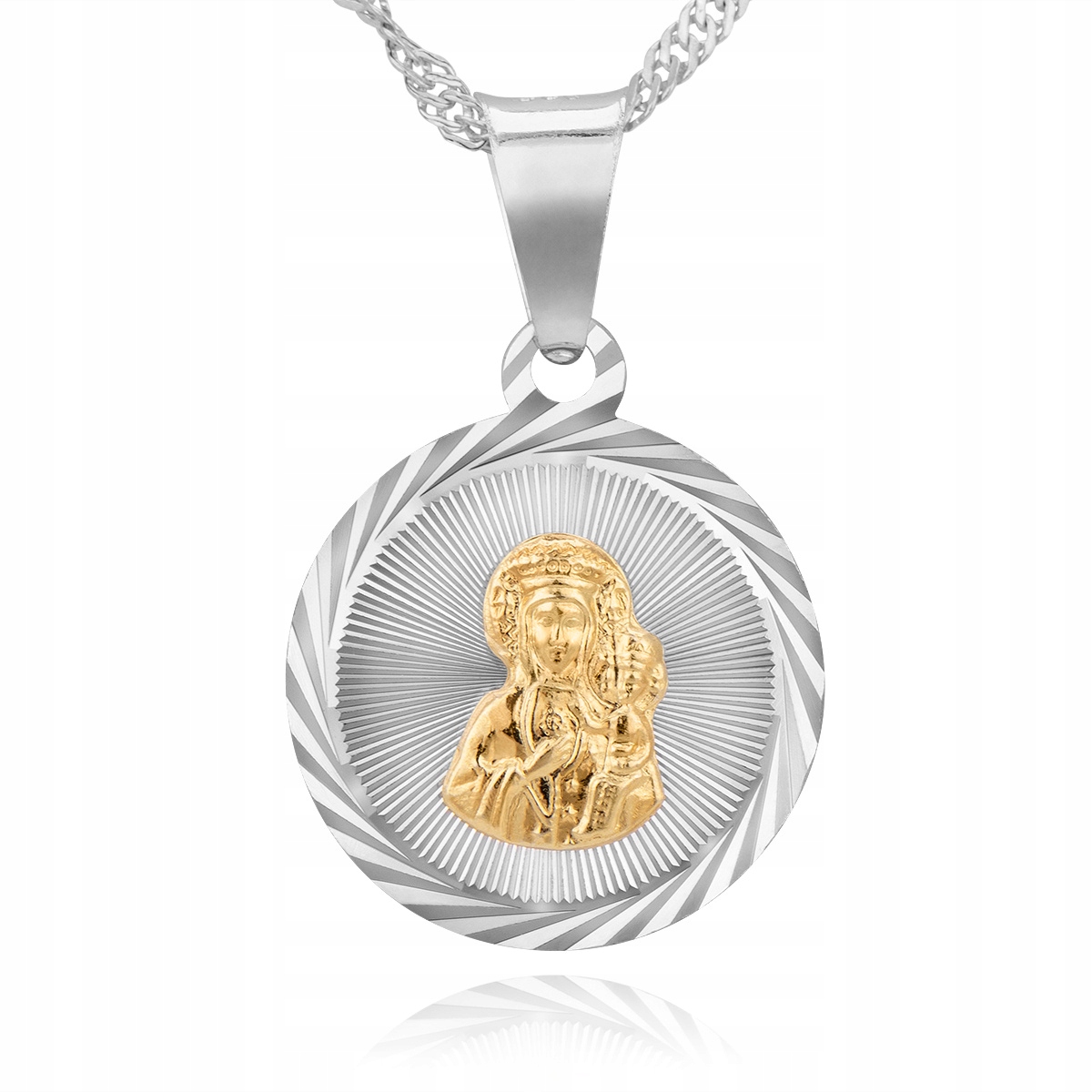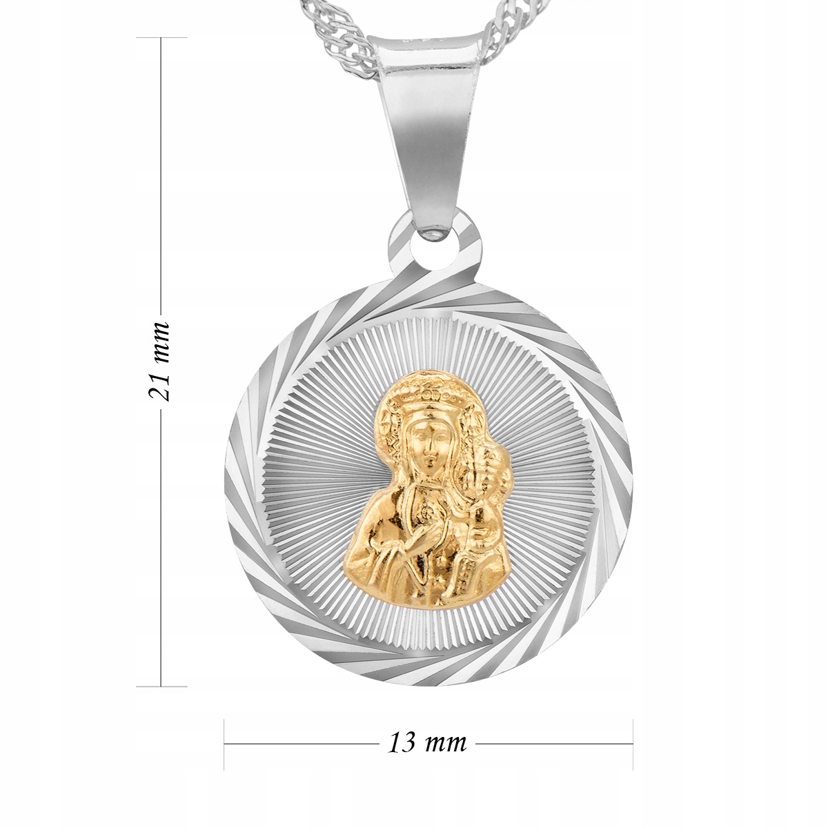 Вышеупомянутый медальон имеет круглую форму и из серебра. Фигура Ченстоховской Богоматери покрыта золотом, что выгодно выделяет ее на серебряном фоне. От Девы Марии исходят лучи, которые невероятно сияют на свету. Края медальона украшены вырезом, имитирующим розетку, которая также заметно отражает свет.