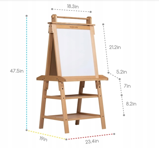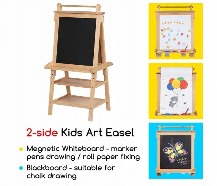➡val художественный Meeden для детей - твердое мольберт из леса с булочкой бумаги - Меловая доска и магнитная доска - пластик для детей - естественная отделка h1>
