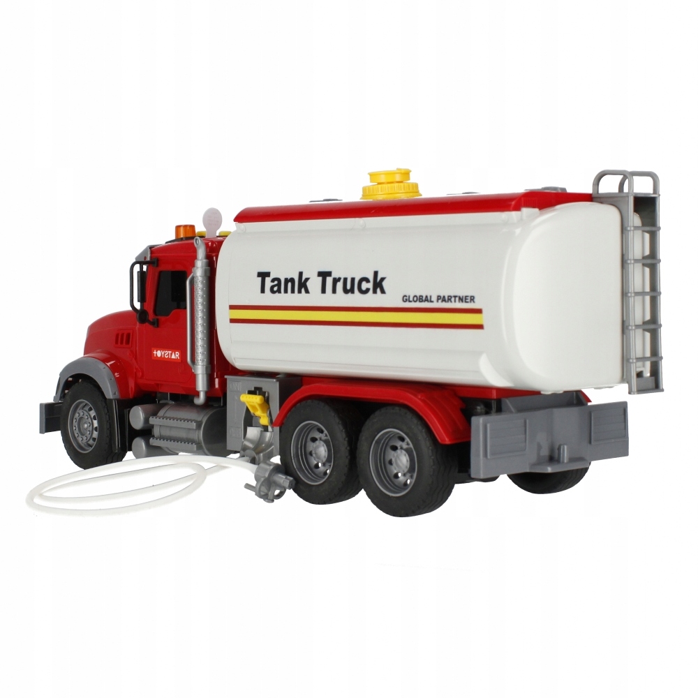 У транспортного средства есть много движущихся элементов, после завершения соответствующего контейнера с водой из шланга, водяных брызг, выполняет функцию отсека, так что после продвижения вперед я продолжаю ездить. Автомобиль имеет светлые и звуковые эффекты, начатые с трех кнопок, расположенных на крыше автомобиля: стрельба по двигателю, рог, с автомобилем. Дополнительной достопримечательностью этого автомобиля является кнопка «Насос», преимущество также - длинная змея, которую будет легче опустошить резервуар. Mega Creative Tanker понравится каждому маленькому любителю специальных транспортных средств