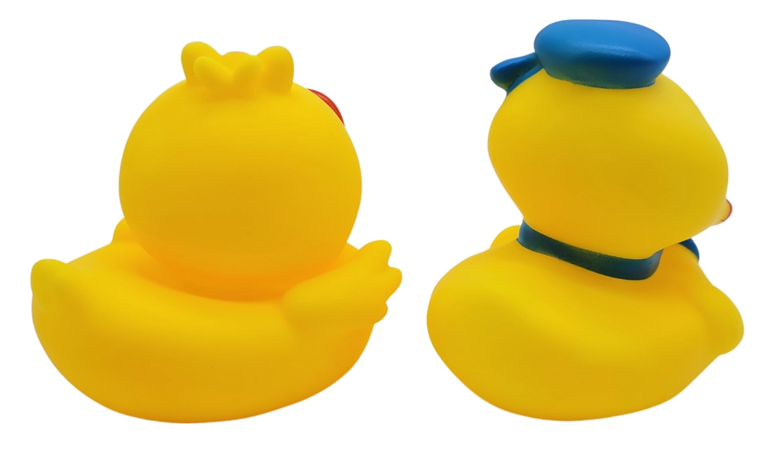 утки явно нарисовали глаза и тщательно окрашенный клюв. Очень хорошее изготовление и используемый материал. Не -токсический, без фталатов и бисфенола