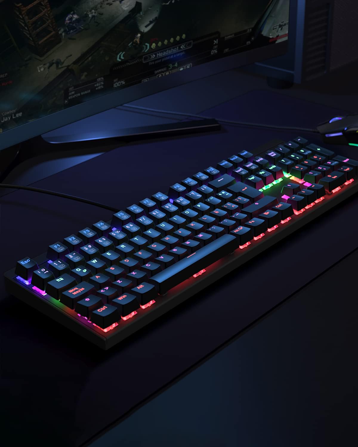 Механическая клавиатура с светодиодной подсветкой : 6-цветовая подсветка (каждый строк имеет свой цвет), 9 запрограммированных эффектов освещения и 2 розетки для назначения световых эффектов. Выберите эффект Pre -Set или настройте конфигурацию, чтобы настроить ее на конфигурацию компьютера
