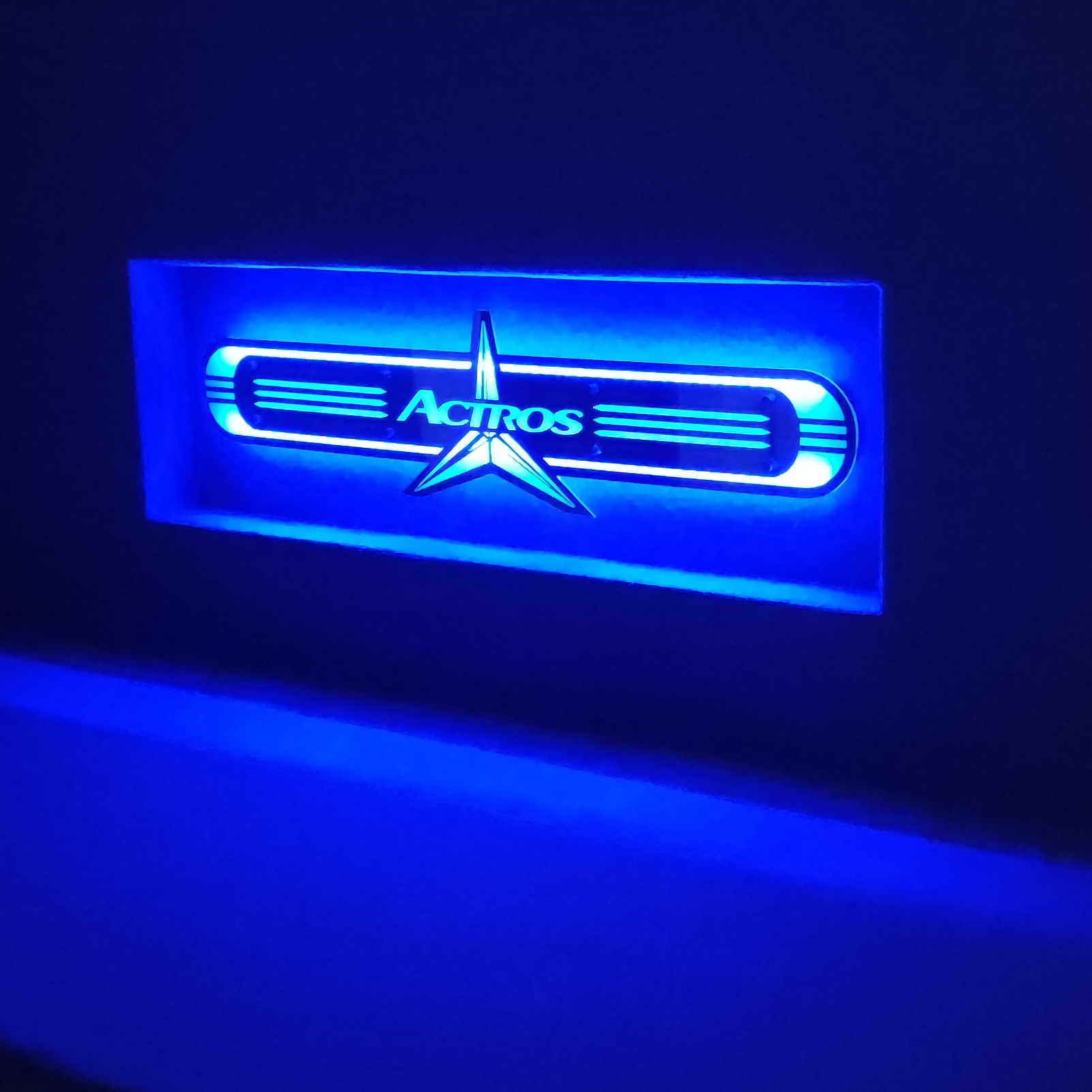 Светодиодное зеркало Mercedes Actros на задней стенке, над кроватью MB01-Blue