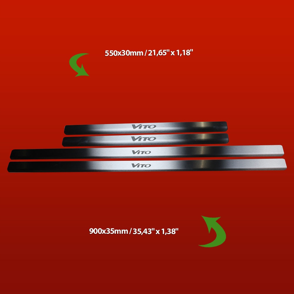 Carmodstore участвует в предоставлении высококачественных автомобильных энтузиастов, которые не только соответствуют, но даже превосходят их ожидания. Наши пороговые значения Mercedes Vito W638 для порогов 4 двери из нержавеющей стали 304 Matt Mercedes Vito W638 Двери свидетельствуют о нашей приверженности качеству, стилю и производительности. Улучшите интерьер вашего автомобиля благодаря нашим порогам дверей Mercedes Vito W638 и почувствуйте разницу.