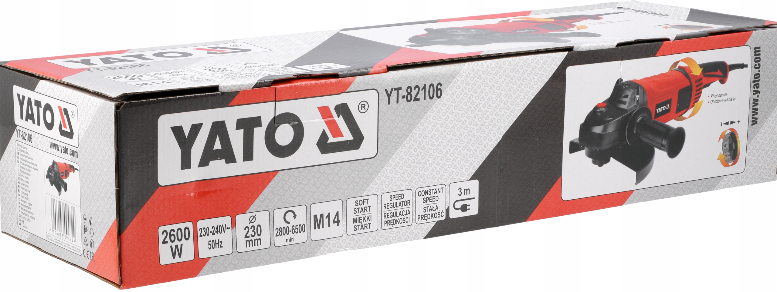 Очень мощная шлифовальная машина YATO 230 мм мощностью 2600 Втпредназначена для резки и шлифовки металлов и минеральных строительных материалов: кирпича, натурального и искусственного камня, бетона и плитки.