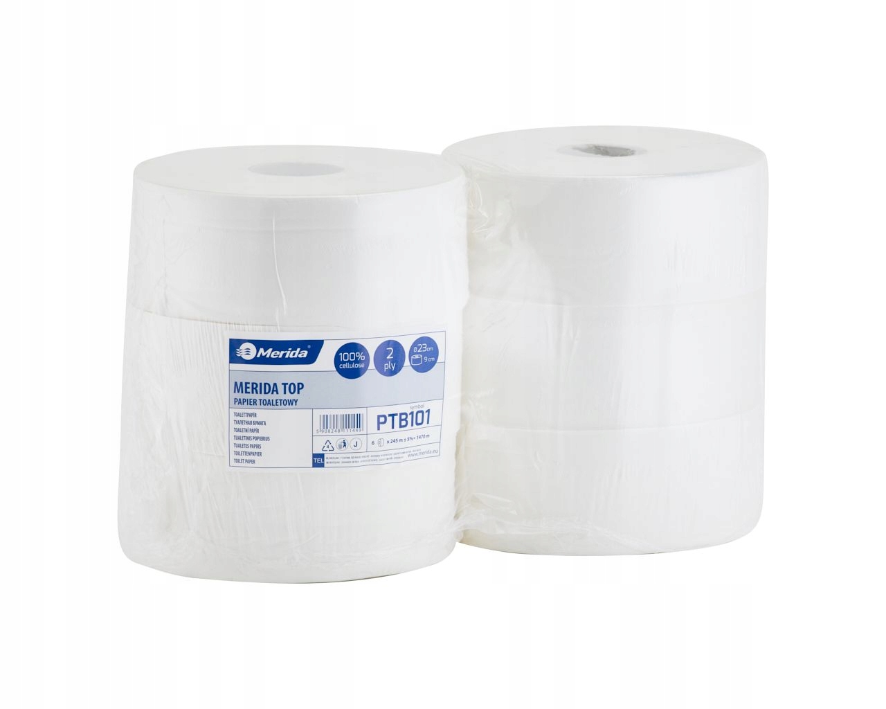 туалетная бумага Merida Top White, целлюлоза, два -слой, упаковка: 6 роликов x 245 метров, белая туалетная бумага