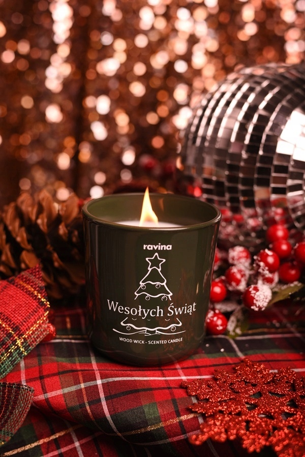 Уникальная ароматическая свеча RAVINA с ароматом РОЖДЕСТВЕНСКОЙ ЕЛКИпосле зажжения окутывает своим ароматом, в котором мы чувствуем и специи, и все рождественские деликатесы.