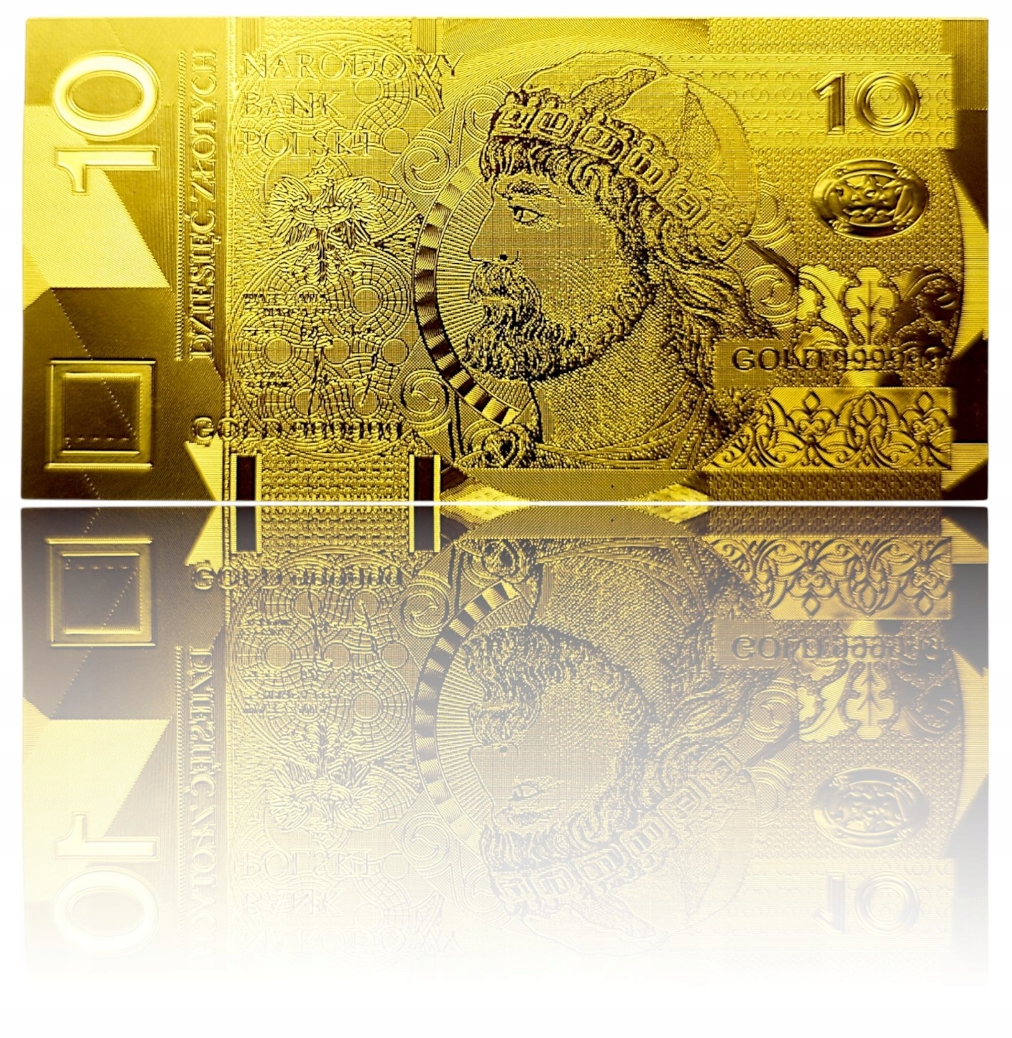 Уникальная позолоченная банкнота из ПВХ 10 злотых, ЗОЛОТАЯ ВЕРСИЯ