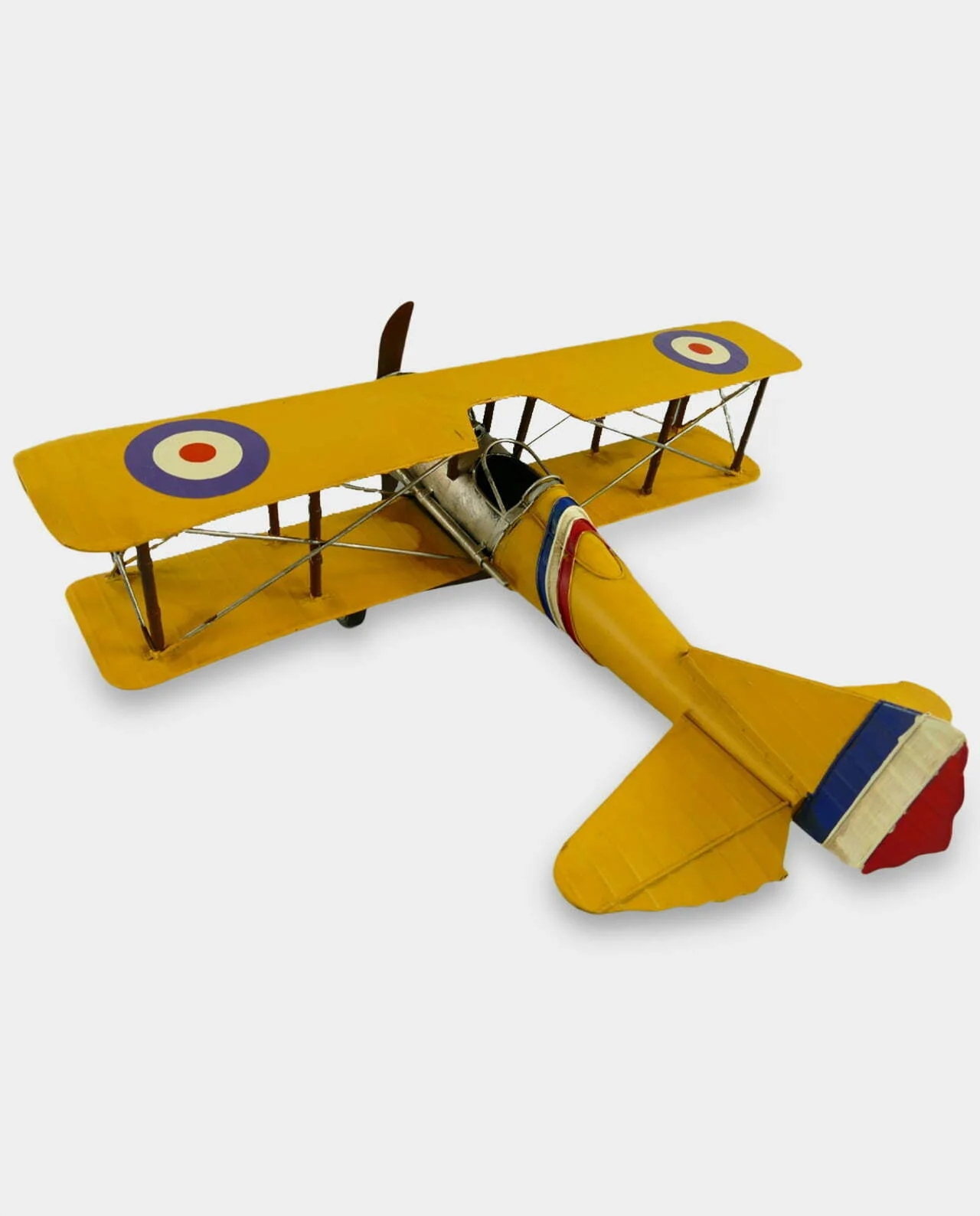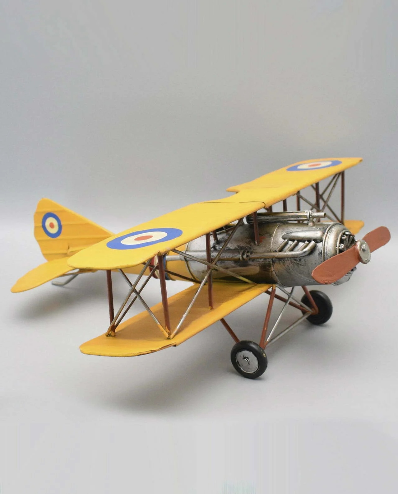 Большая винтажная модель, изображающая старую плоскость - желтый биплан, изготовленный из металла очень точно, с вниманием к наименьшим деталям. Модель производит отличное эстетическое впечатление и имеет вечный стиль. Подходит для многих интерьеров, как украшение или как интересная идея подарка.
