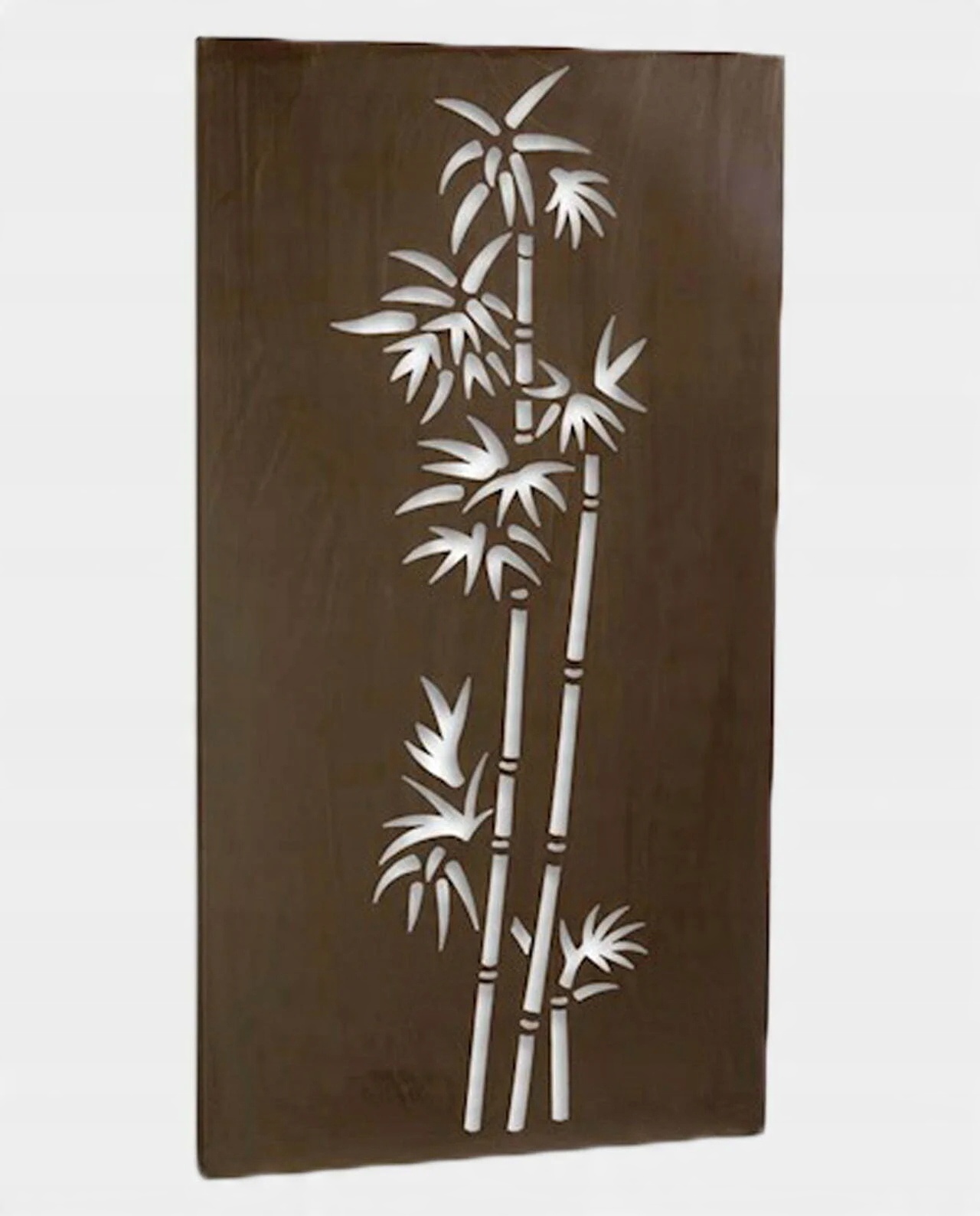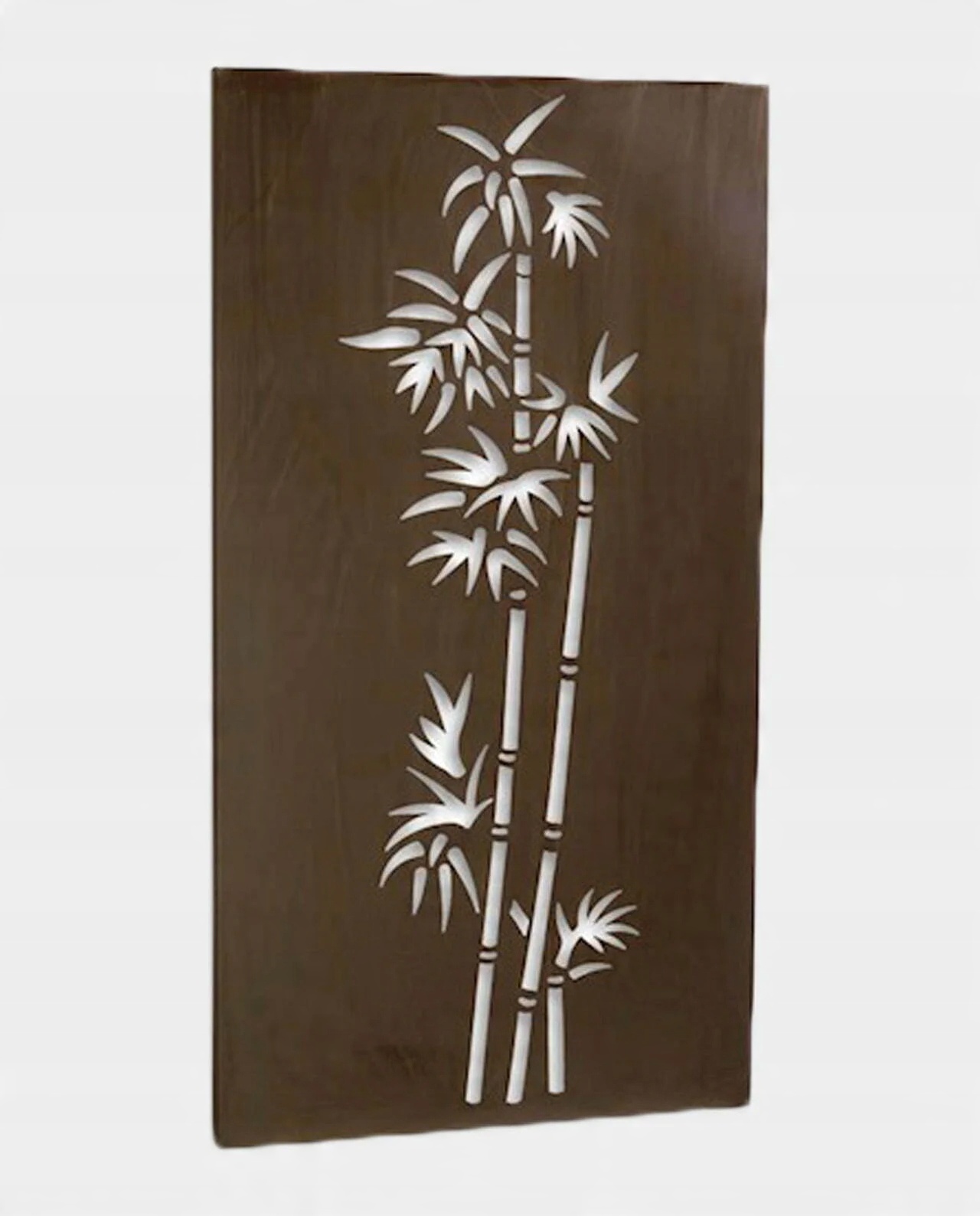 Стильное настенное украшение в виде ажурного панно с растительным мотивом – бамбуком, в азиатском стиле. Декоративный элемент, который подойдет как внутри, так и снаружи дома, на его фасаде или в саду. Это металлическое украшение также можно использовать для заполнения щелей в каменном заборе участка или в деревянной стене садовой беседки.