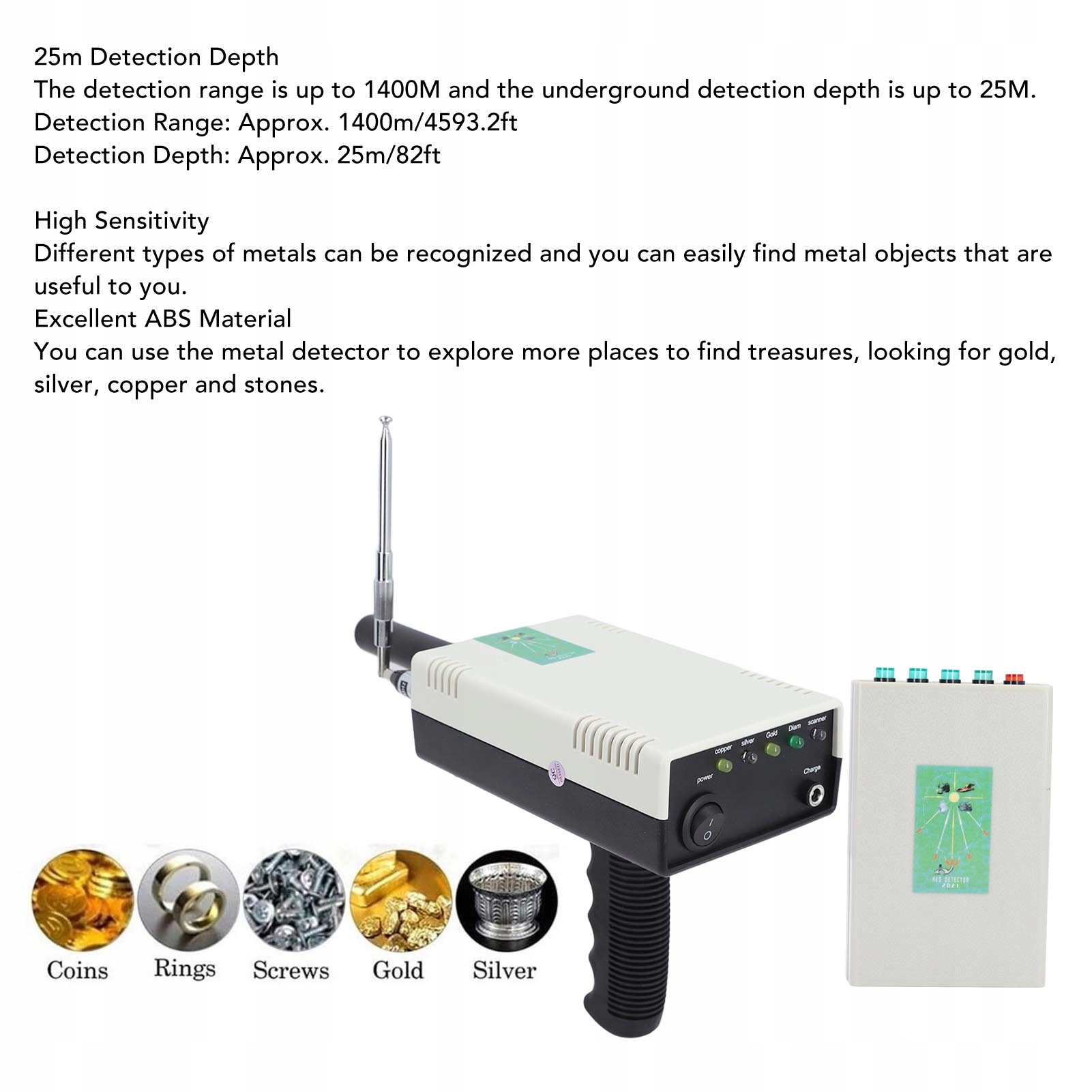 2. Глубина обнаружения 25 м: этот детектор металла имеет диапазон обнаружения до 1400 м, а глубина подземного обнаружения - до 25 м. Отличный материал ABS: этот профессиональный металлический сканер изготовлен из материала ABS. Вы можете использовать металлоискатель, чтобы открыть больше мест в поисках сокровищ, в поисках золота, серебра, меди и камней.
