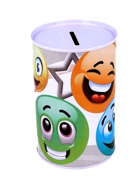 Металлический пиггированный банк овальный стилизованный смешные Смайливые лица , смайлики . Отличный подарок для ребенка, идеально подходящий для сбора монет.
