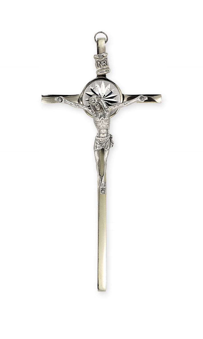 МЕТАЛЛ СЕРЕБРЯНЫЙ НАСТЕННЫЙ КРЕСТ 17 СМ