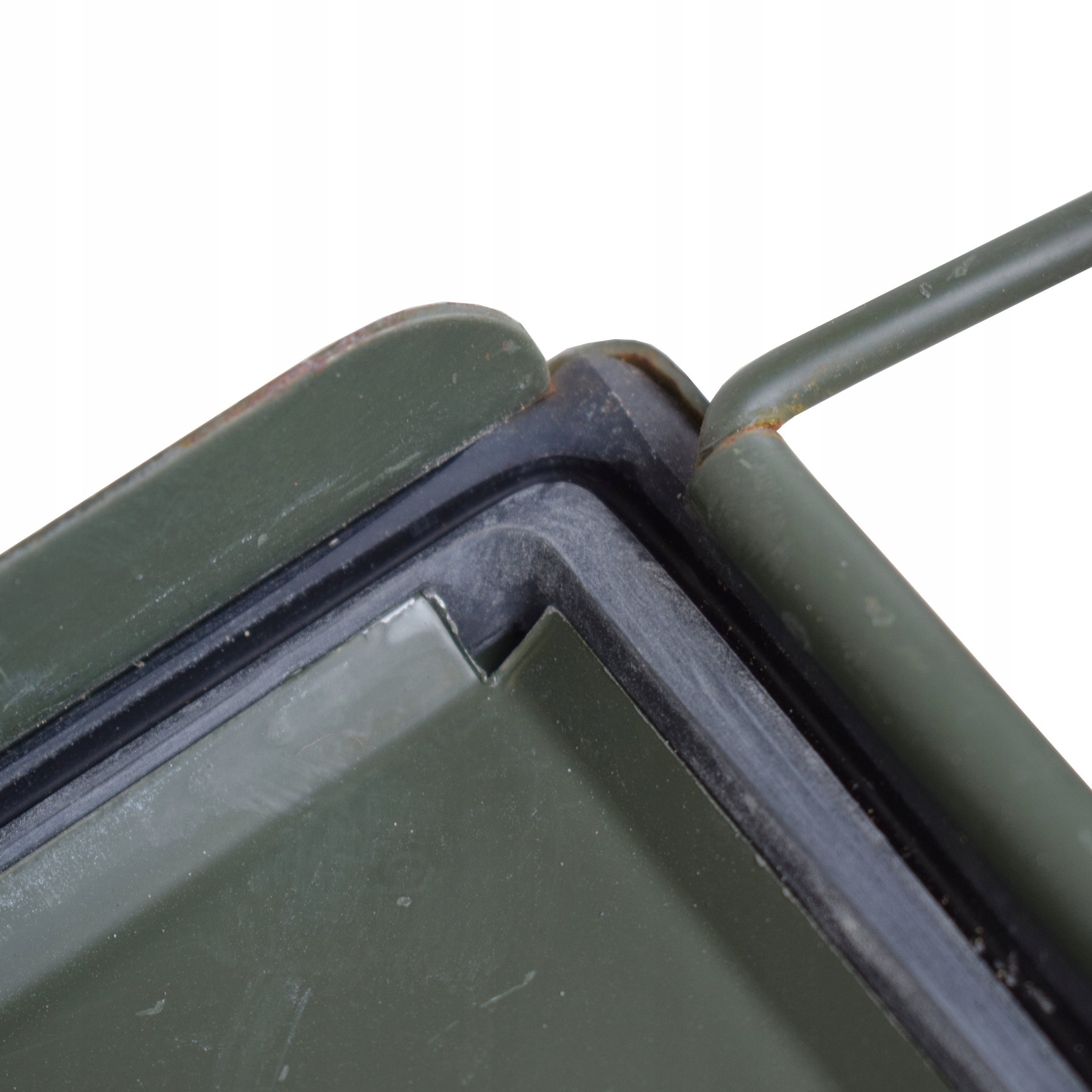 Оригинальный ящик для транспортировки боеприпасов. Герметично закрывается (резиновое уплотнение) на защелке, со съемной откидной крышкой, из прочного листового металла.