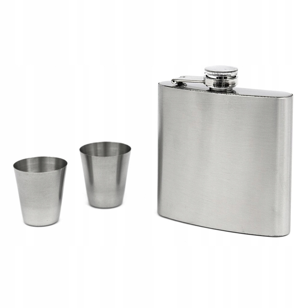 Классическая фляжка из нержавеющей стали серебристого цвета емкостью 170 мл. Дополнительно имеется воронка для удобного наполнения и 2 металлических стакана. Поверхность брашированная, что придает ей элегантность и шарм. Его можно использовать как украшение на витрине, но прежде всего он будет полезен как элемент экипировки мужского пиджака ;-).