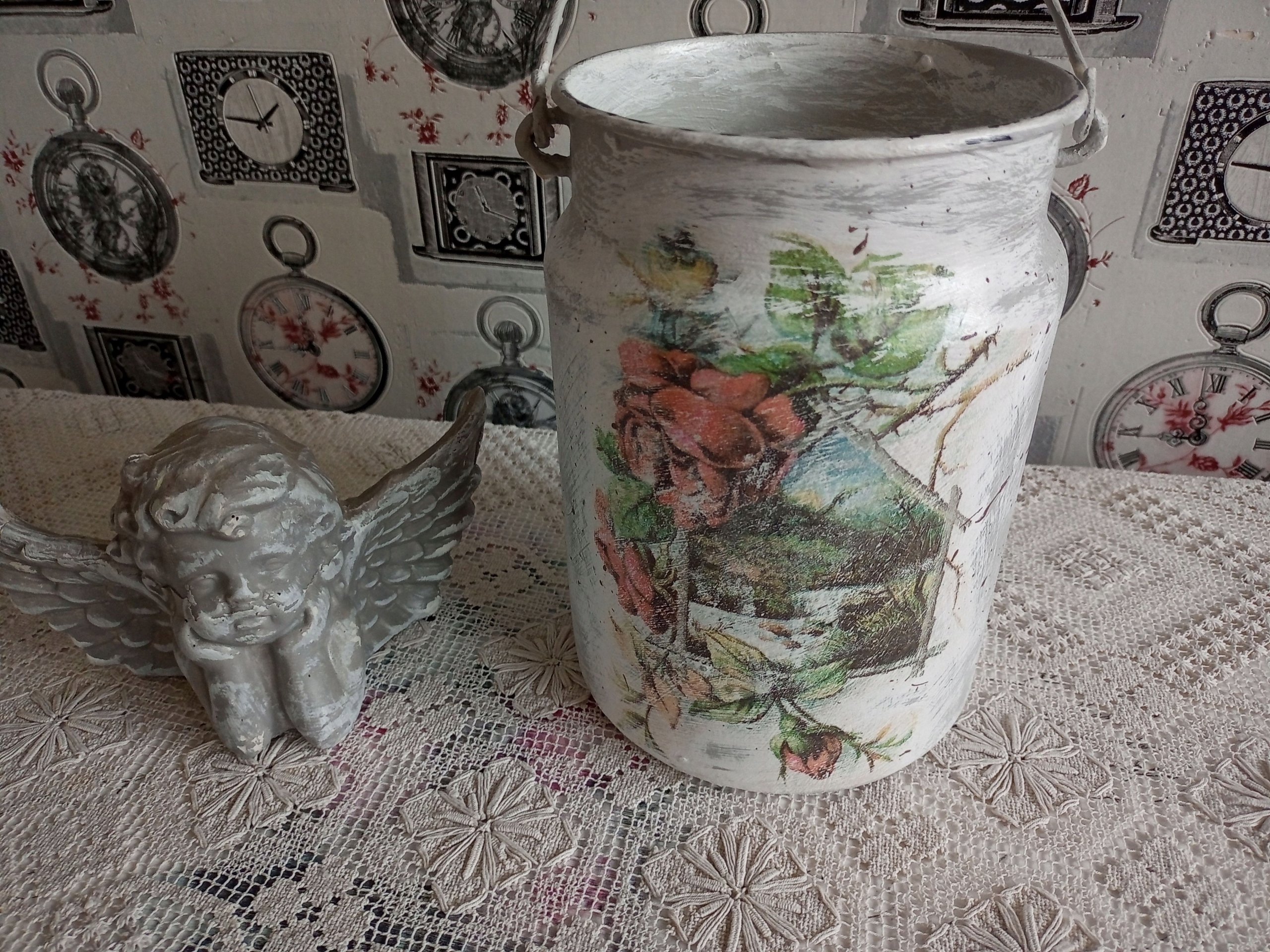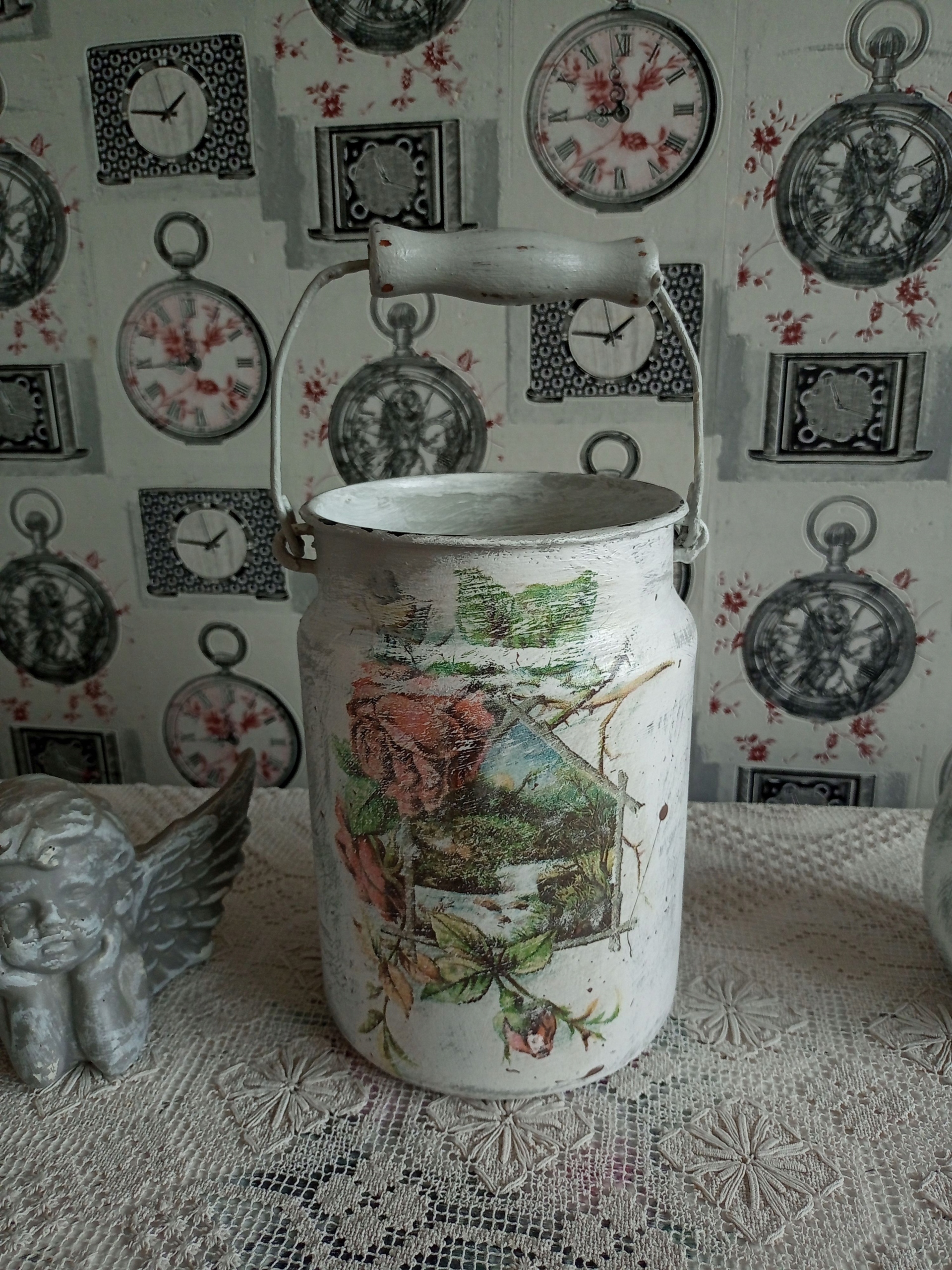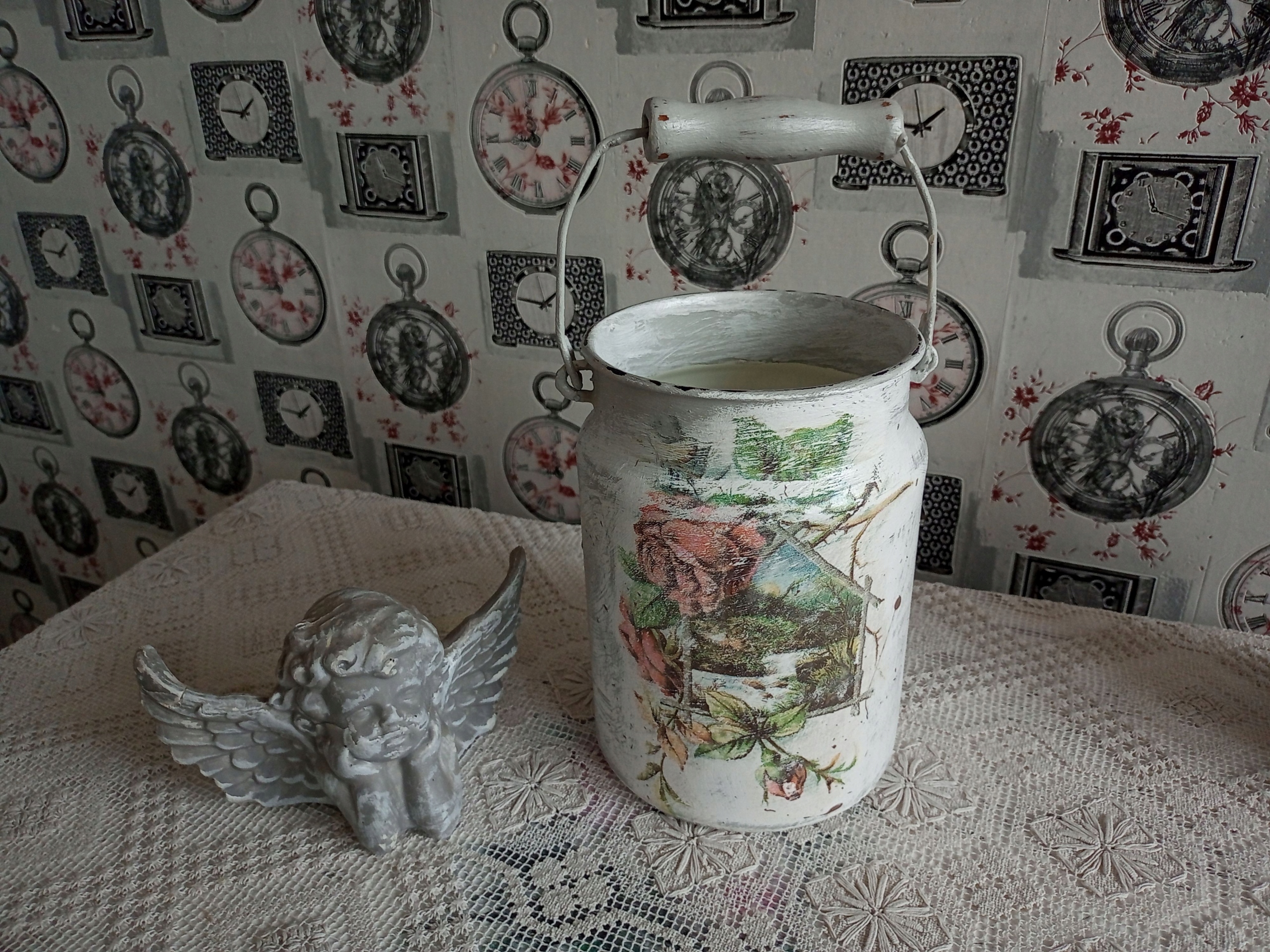 METALOWA MALOWANA KANKA POJEMNIK SHABBY CHIC