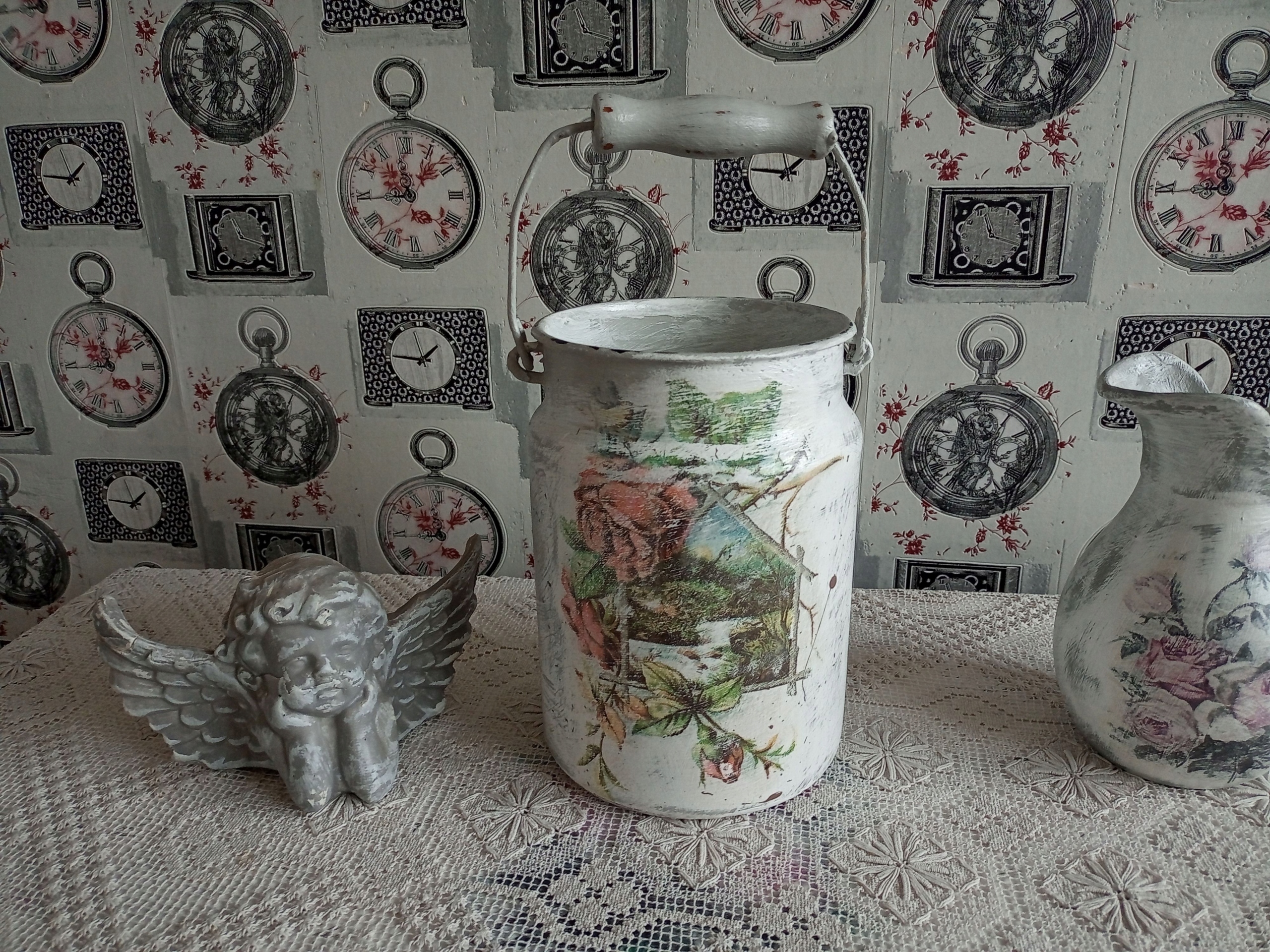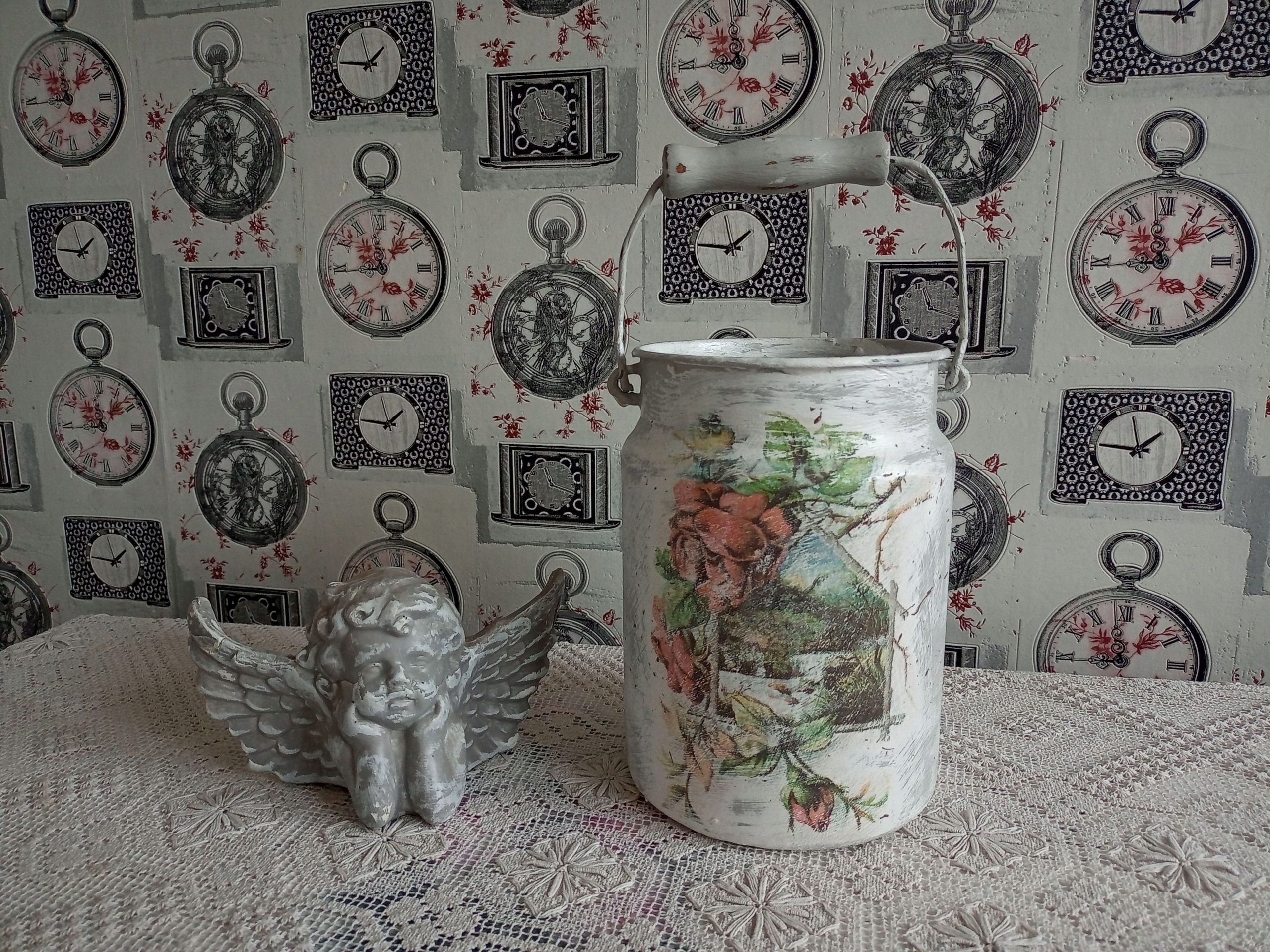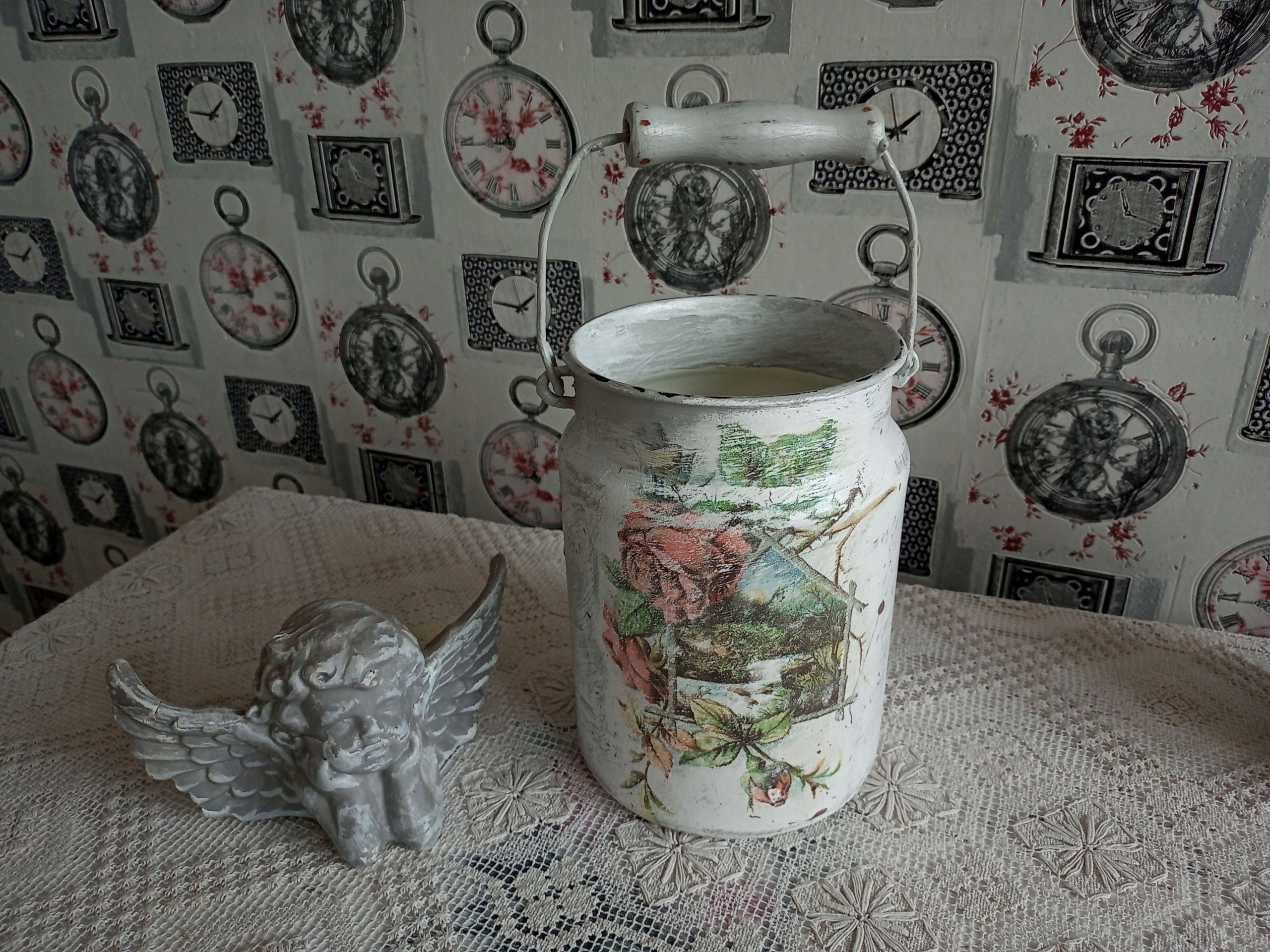 METALOWA MALOWANA KANKA POJEMNIK SHABBY CHIC