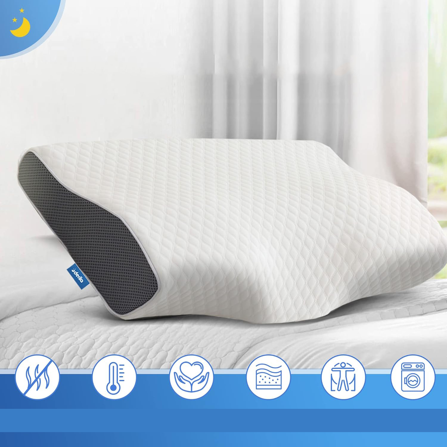 🦋🦋ergomical структура - структура в форме бабочки, точно адаптируется к естественной кривизны шейного отдела позвоночника, эффективно улучшая скорость засыпания и продления времени сна. Подходит для различных положений сна и может обеспечить эффективную поддержку как в положении, лежащем на спине, так и на стороне.