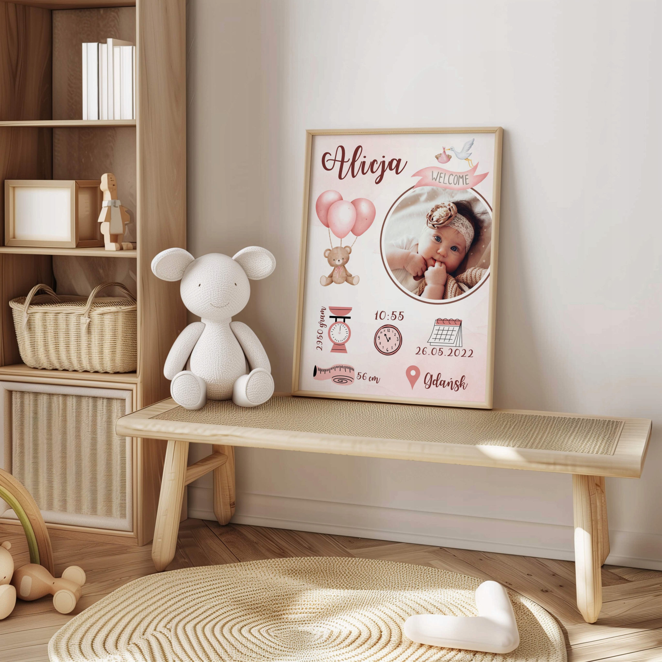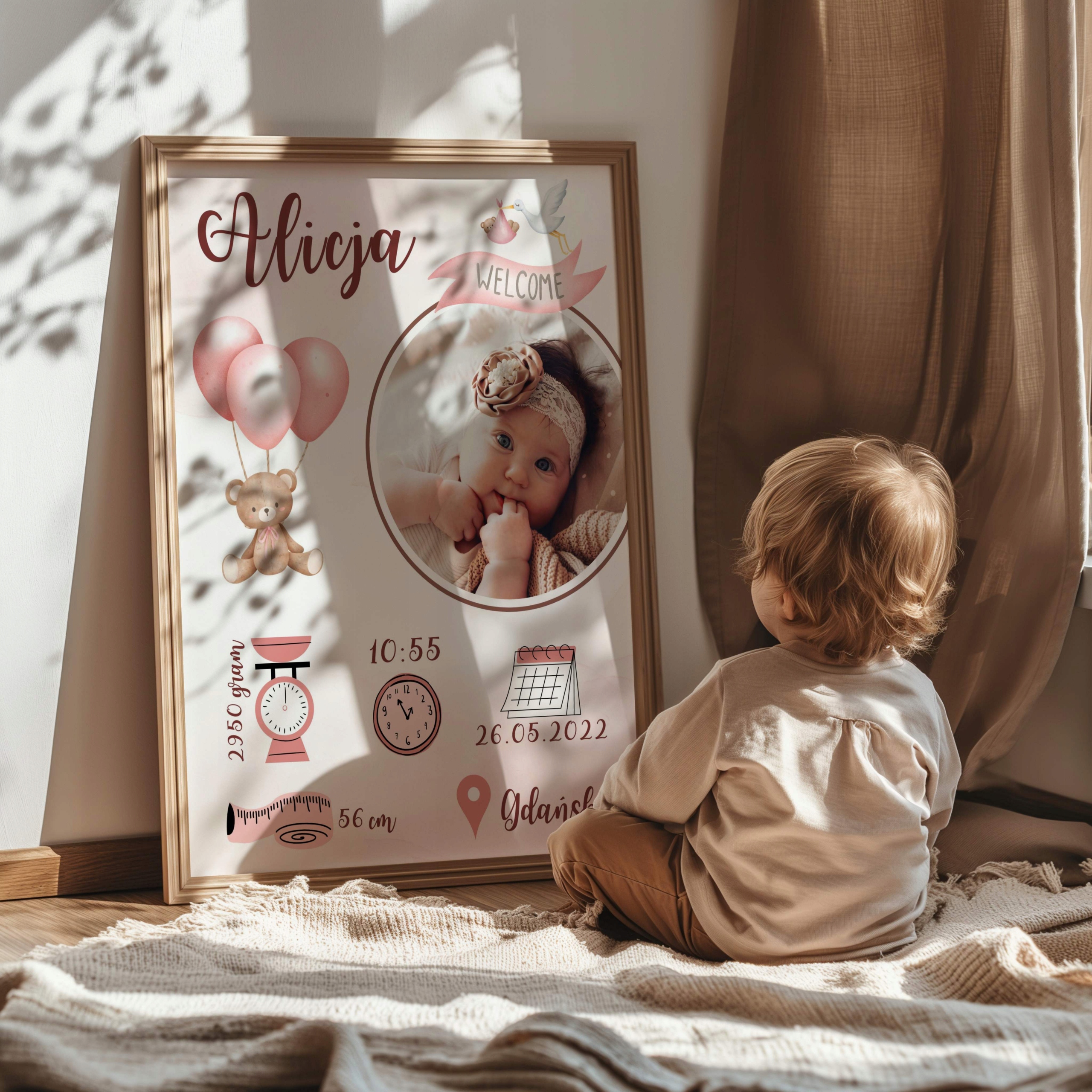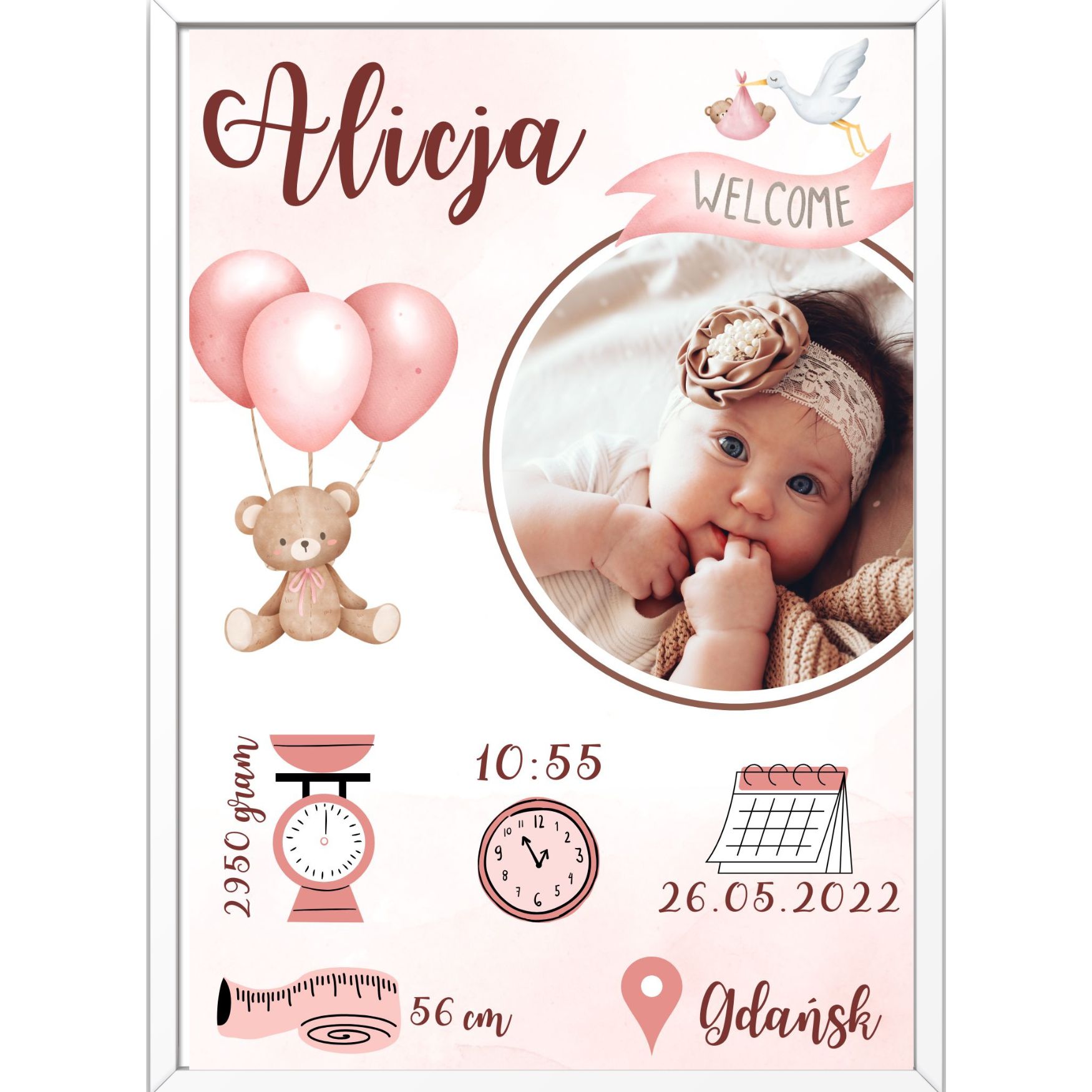 Метрическое рождение ребенка 21x30 см в белой раме h1>