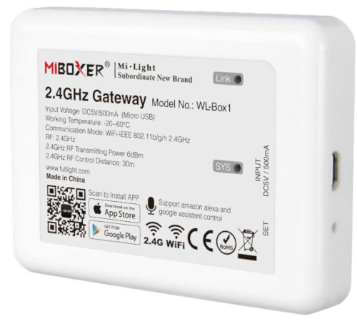 MiBoxer WL-Box1 Bridge/HUB Wi-Fi LED Mi-Light Android iOS 2,4 ГГц — улучшенная версия iBox2, помощник Google и Amazon!