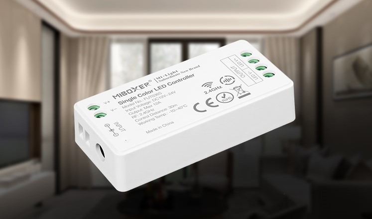 Приемник беспроводной системы Mi-Light Single Color FUT036S зонированный позволяет управлять подсветкой одноцветных 2PIN светодиодных лент. Управлять контроллером можнос помощью пульта ДУ,панели или приложенияна смартфоне через Wl-Box. Работает с четырёхзонными и восьмизонными пультами дистанционного управления! Благодаря радиосвязи 2,4 ГГц вы можете плавно переключаться >яркость освещения даже на расстоянии 30м!