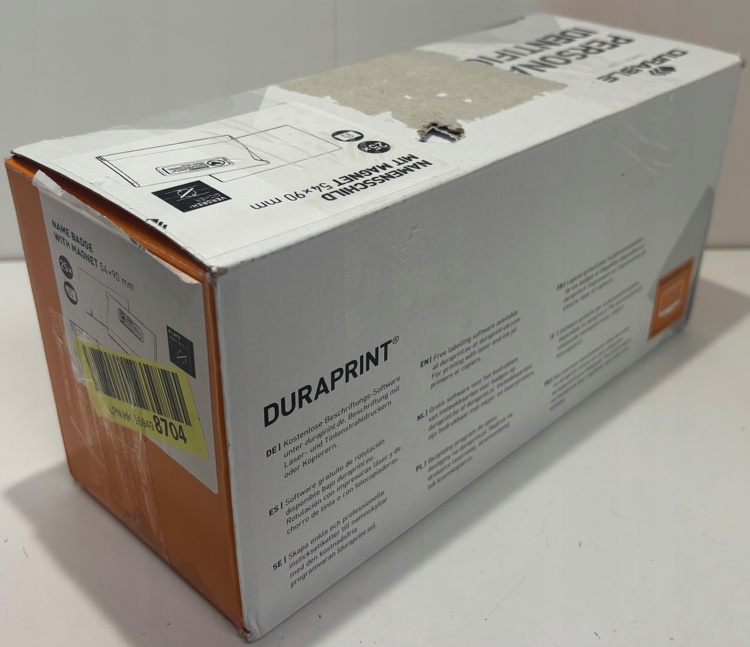 - Особенно полезно для оснащения людей, которые находятся в отличном движении, например, на конференциях и крупных событиях. Программное обеспечение Duraprint с функцией базы данных на веб -сайте производителя
