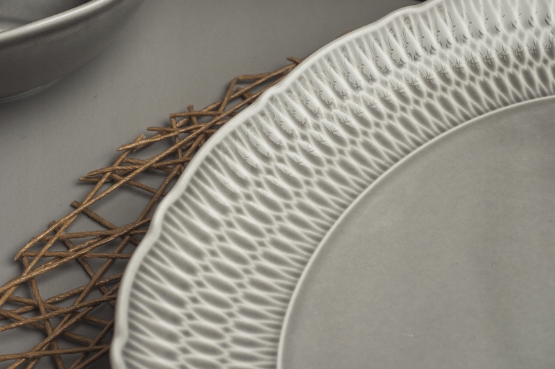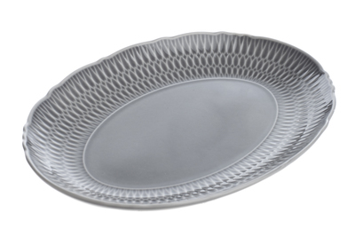 Rawier, изготовленный из высококачественного польского фарфора с красочным остеклением. Практическая и стильная, серая с оригинальным нажатым рисунком. Идеально подходит для подачи колбасов, сыра или стартеров.