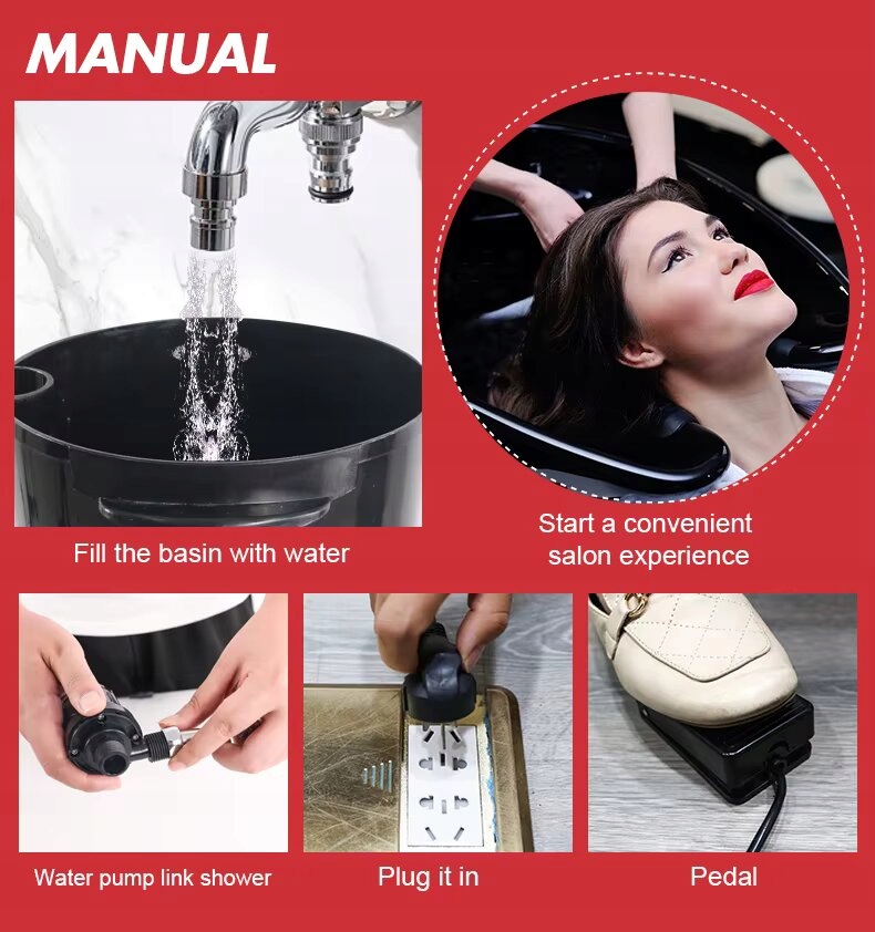 портативная парикмахерская автомойка с регулировкой высоты и педалей ног h1> Современная, практическая парикмахерская, оборудованная двумя резервуарами - один для чистой воды, другой для грязной воды. Благодаря электрическому насосу и педали ноги, операция быстрая и удобная. Регулируемая высота позволяет вам соответствовать устройству с высоким клиентом и парикмахером. Идеально подходит для салонов, спа и мобильного использования. h1>